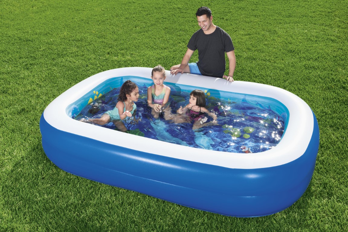 - Sisältö: Yksi uima-allas, kaksi paria 3D-uimalaseja, yksi pakkaus kristalleja, yksi raskaan sarjan korjauslaastari.