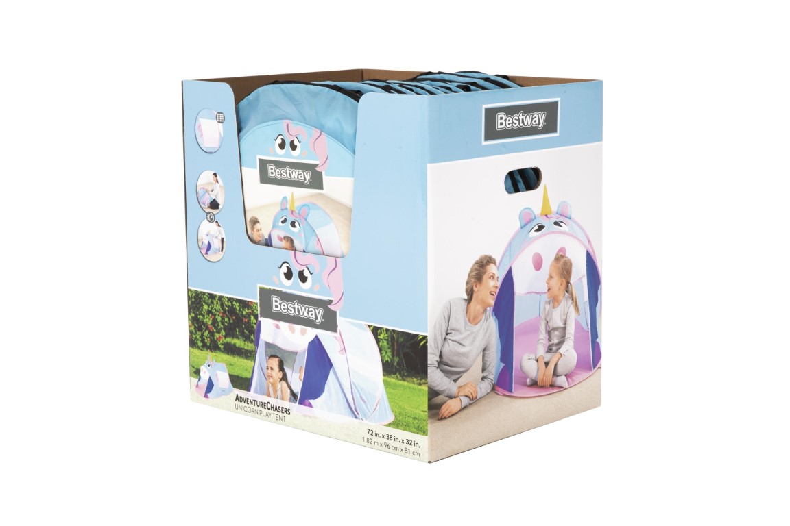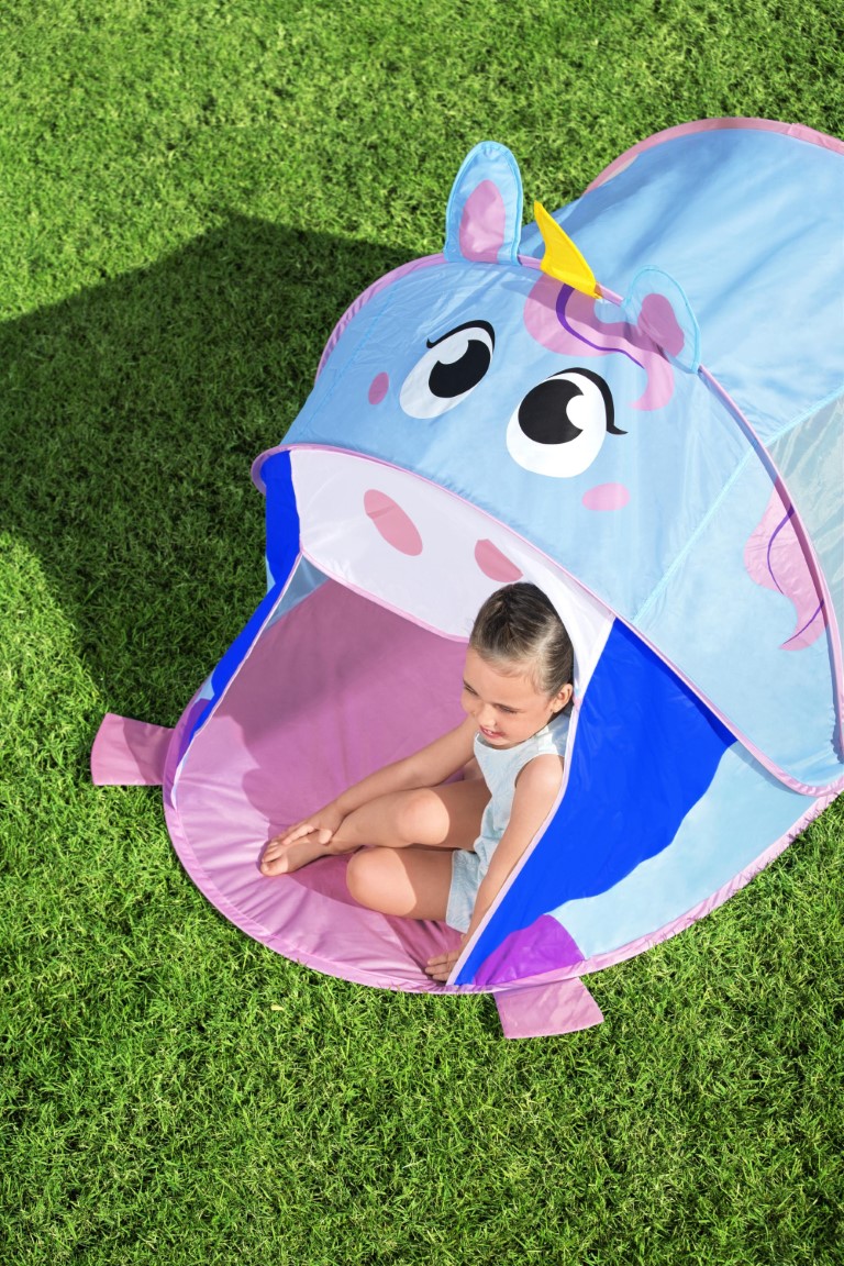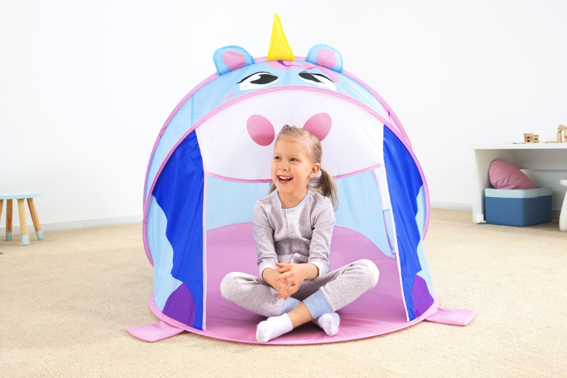 AdventureChasers™ Unicorn -leikkiteltta tarjoaa tuntikausien hauskaa leikkiä ilman vaivannäköä. Pop-up-rakenne on helppo pystyttää, ja teltta on valmis seikkailuun muutamassa sekunnissa. Söpö yksisarvinen painatus koristaa teltan ulkopintaa, ja siinä on kätevä ryömintätasoinen sisään- ja uloskäyntiovi. Lapset voivat käyttää mielikuvitustaan ja keksiä loputtomasti uusia leikkejä. Teltta toimii erinomaisesti kerhotalona tai tähtiharrastuksessa – mahdollisuuksia on runsaasti! Verkkomateriaalit teltan molemmilla sivuilla luovat hengittävän ympäristön ja antavat vanhemmille näkyvyyttä leikin aikana. Teltassa on tarpeeksi tilaa myös yöpymiseen, ja sinne mahtuu mukavasti makuupussi ja ilmapatja. Kevyt kangas, kokoontaitettava rakenne ja mukana tuleva kantolaukku tekevät teltasta helposti kuljetettavan ja säilytettävän. Tämä yksisarvinen leikkiteltta tuo iloa kaikille seikkailunhaluisille lapsille – sisällä tai ulkona leikkiminen on hauskaa ympäri vuorokauden. Loistava lahjaidea seikkailuihin mieltyneille taaperoille!