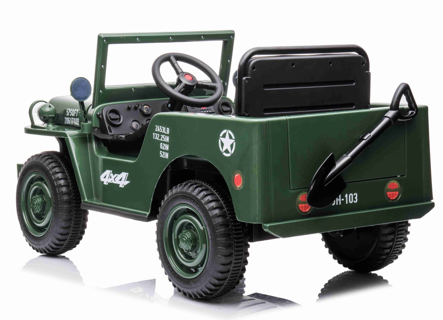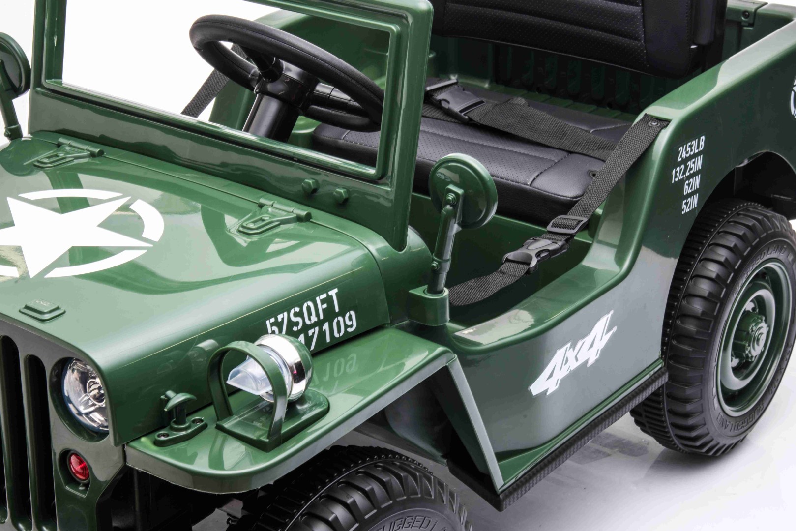 Army Classic -sähköauto, jossa on 4 x moottori, nahkaistuin ja 2,4Ghz-kaukosäädin.