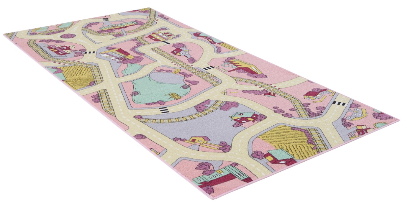 Autoleikkimatto "Playtime" - Vaaleanpunainen 95 x 200 cm