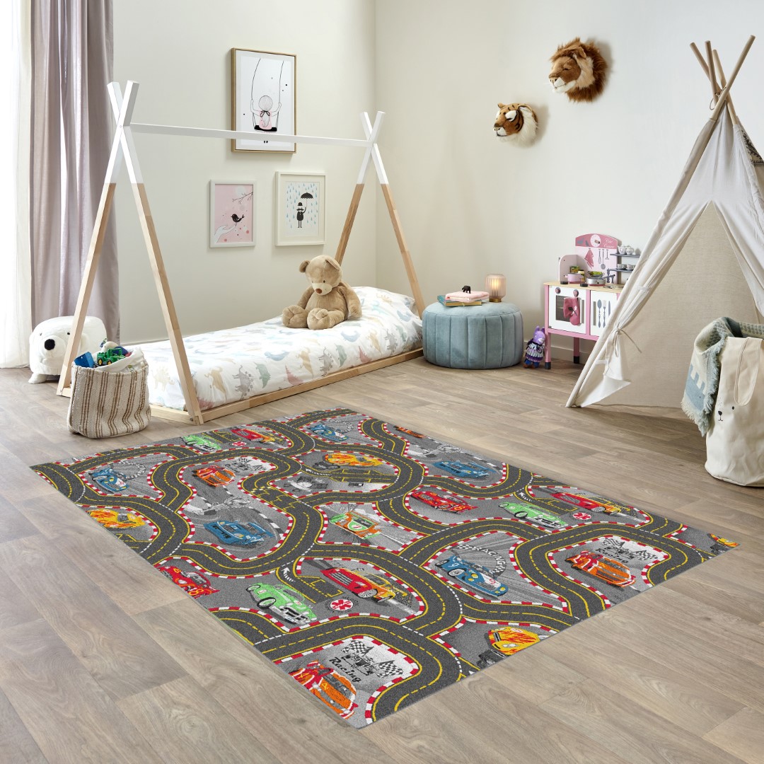 Autoleikkimatto ''Racers'' 140 x 200 cm, Antrasiittia