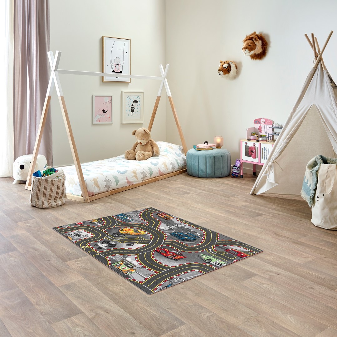 Autoleikkimatto ''Racers'' 95 x 133 cm, Antrasiitti