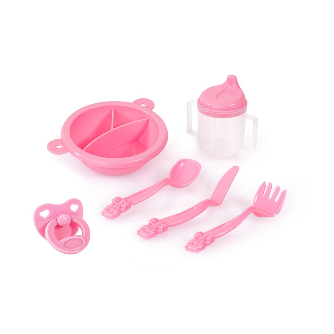 Sisältää nukenvaunut, nuken matkasängyn, muovisia tarvikkeita ja muuta.