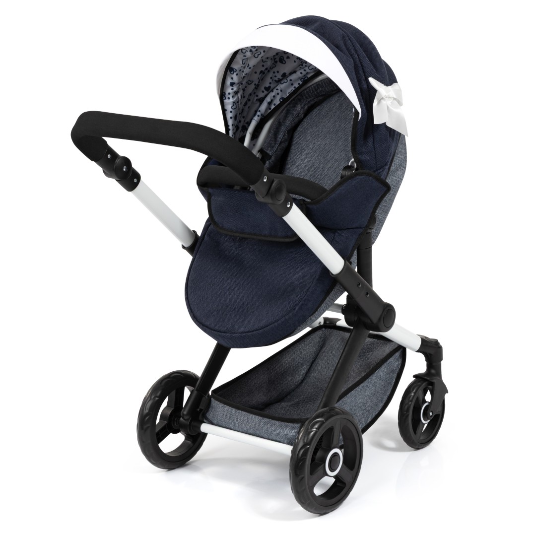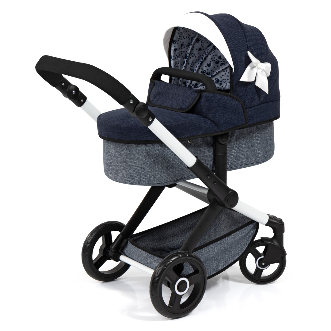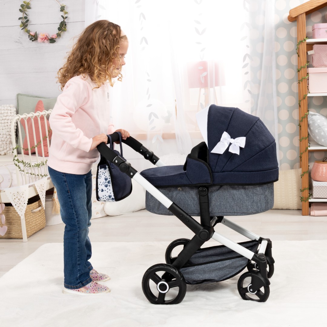 XEO-yhdistelmävaunuissa on moderni muotoilu, ja ne sopivat jopa 52 cm:n pituisille nukeille. Säädettävän kahvan avulla nämä nukenvaunut voidaan helposti säätää lapsesi pituuteen sopiviksi.