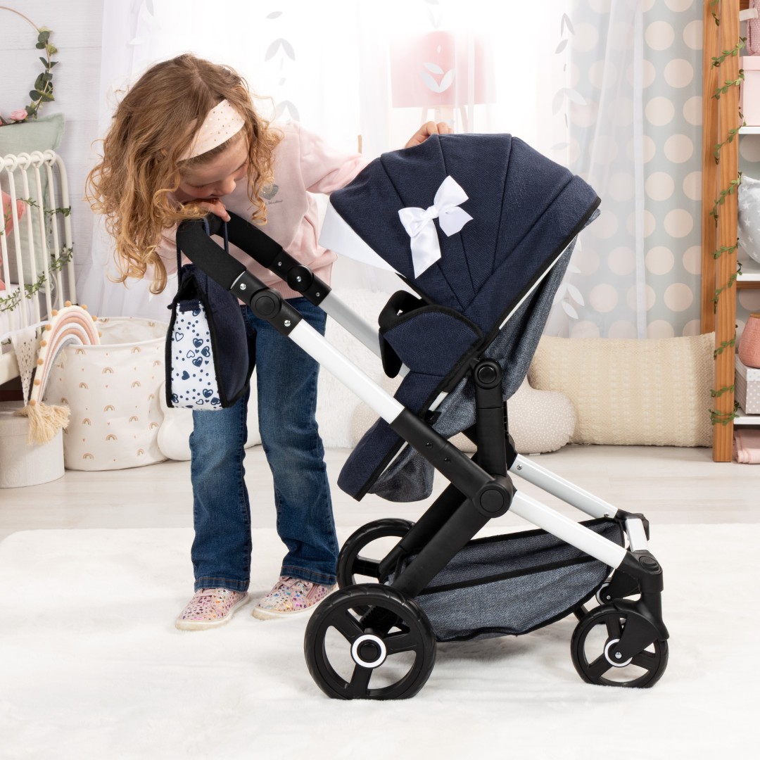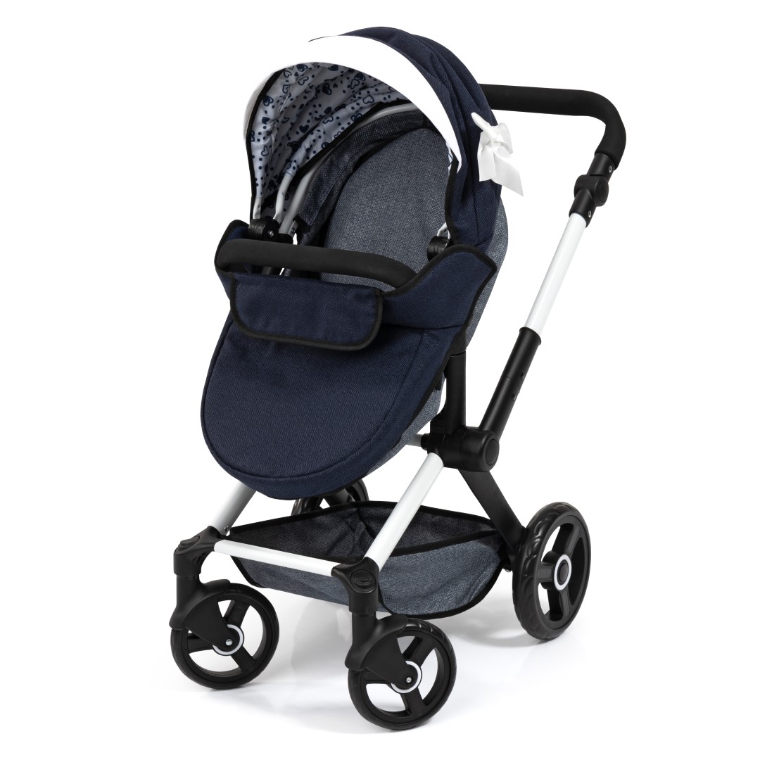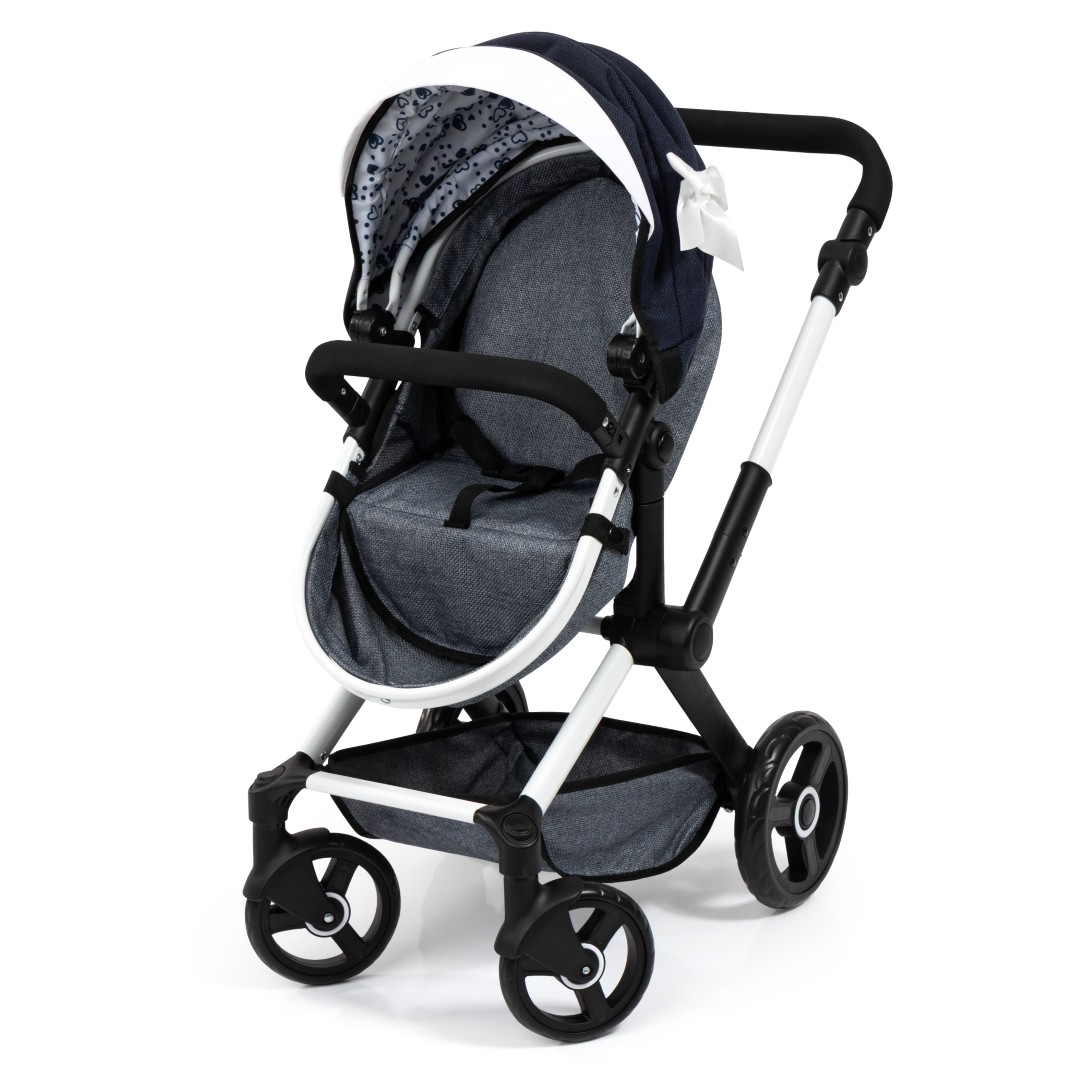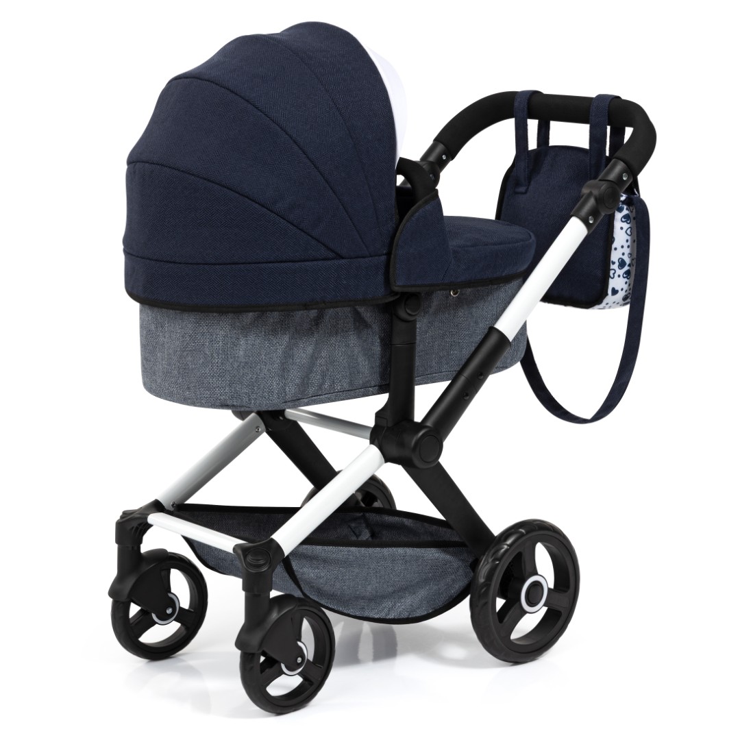 XEO-yhdistelmävaunuissa on moderni muotoilu, ja ne sopivat jopa 52 cm:n pituisille nukeille. Säädettävän kahvan avulla nämä nukenvaunut voidaan helposti säätää lapsesi pituuteen sopiviksi.