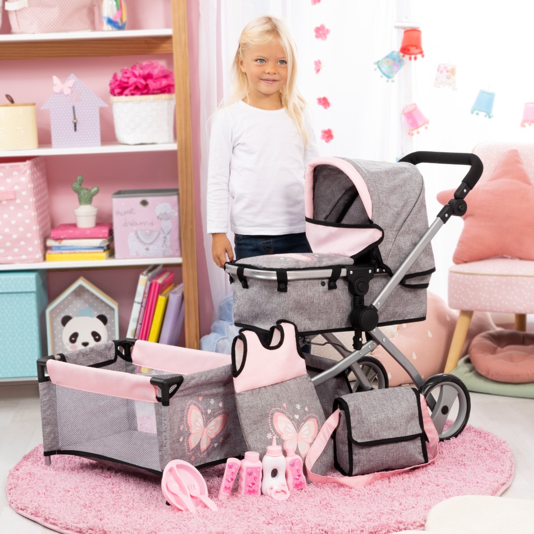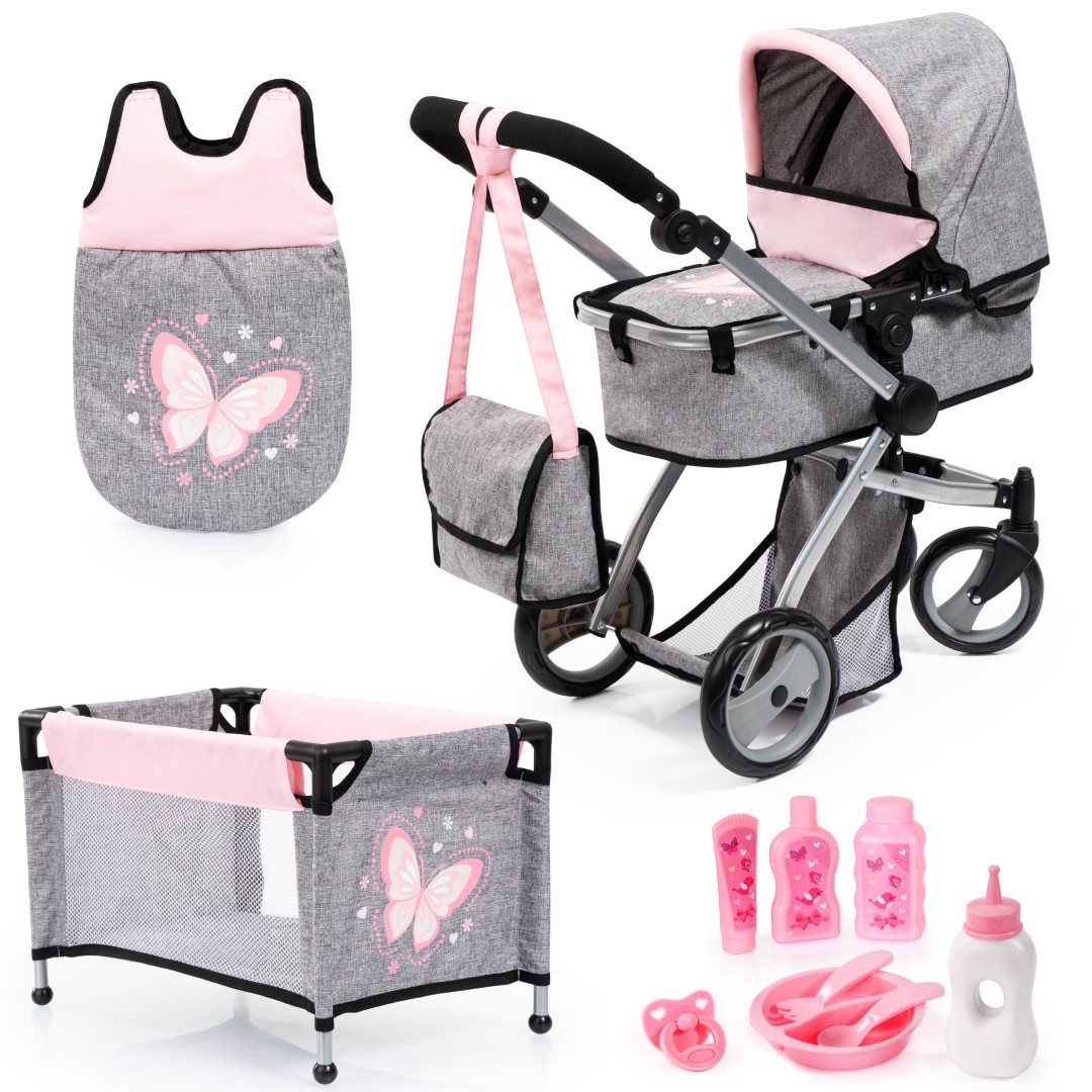 - Sisältää: Nuken vaunut, nuken sängyn ja erilaisia tarvikkeita kuvien mukaisesti.