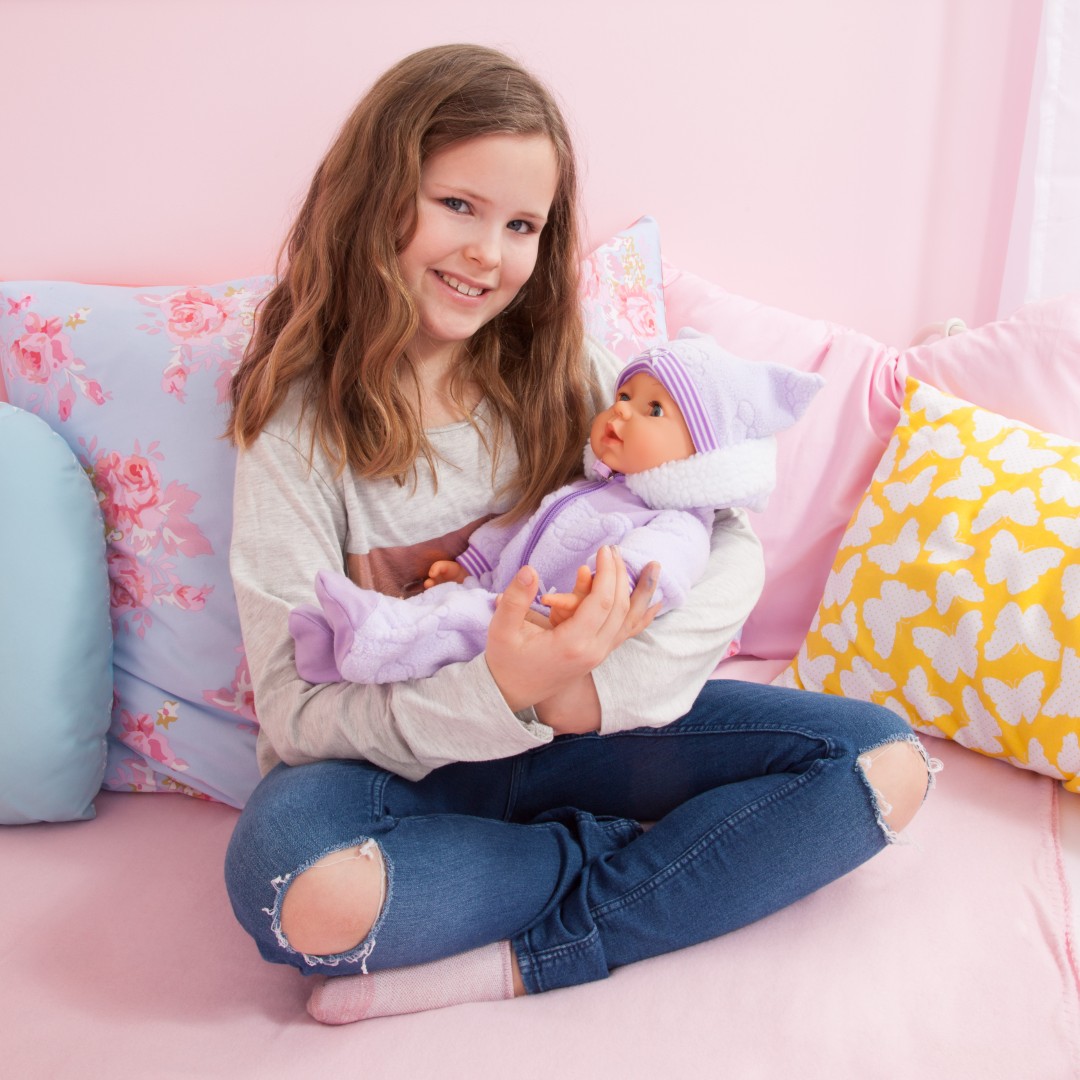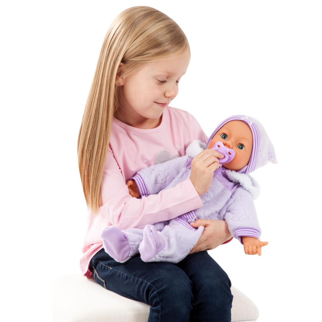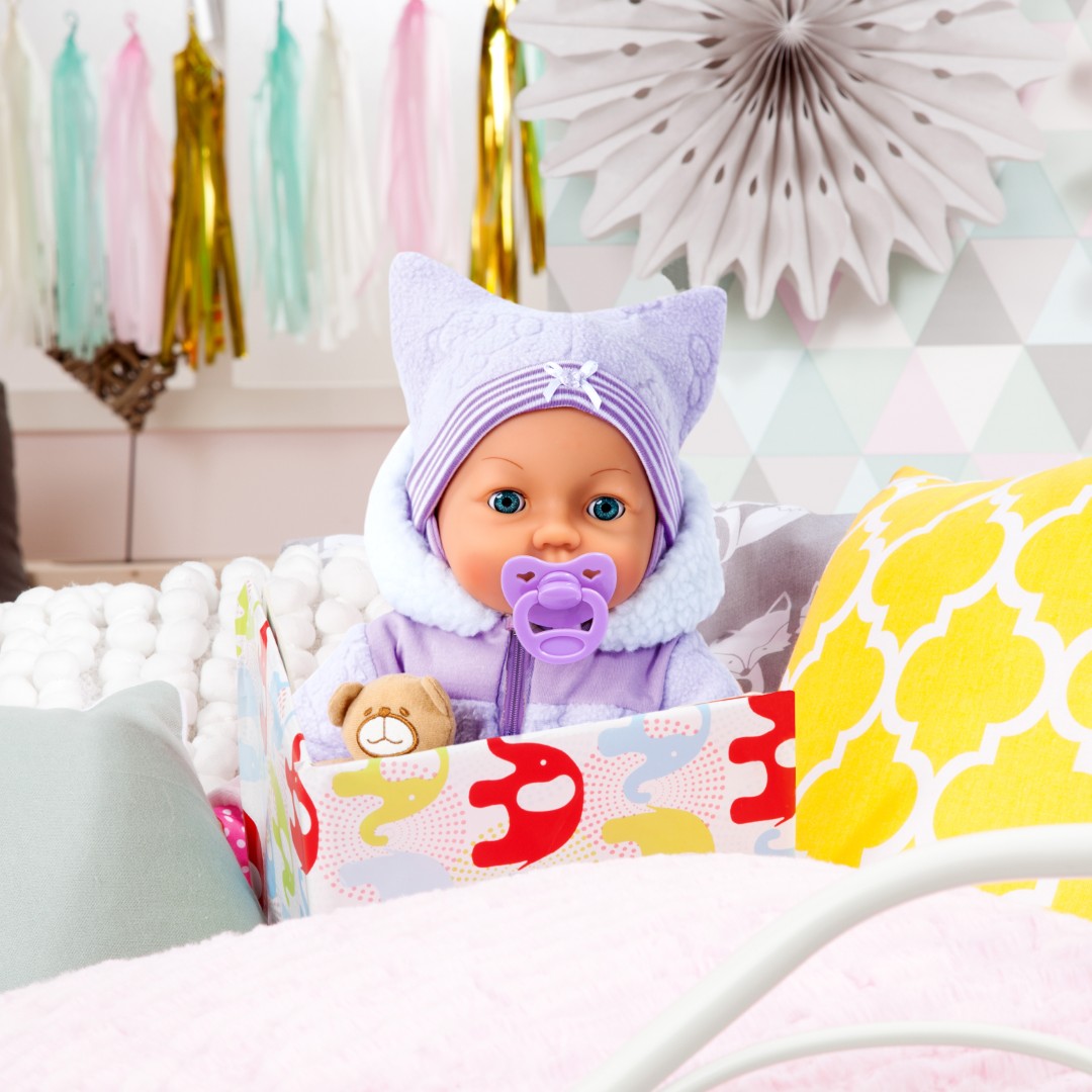 Piccolina Magic Eyes on söpö 46 cm:n pehmonukke, jolla on erilaisia ominaisuuksia. Jos painat hänen oikeaa kättään, hän päästää erilaisia vauvaääniä, sulkee silmänsä ja nukahtaa. Kutita hänen jalkojaan, niin hän nauraa. Jos kosketat hänen vatsaansa, hän räpyttelee silmiään ja tulee iloiseksi. Jos annat hänelle pullon, hän päästää juomisääniä ja liikuttaa suutaan. Settiin kuuluu myös lisäpussi, ruokalappu, nalle, muovinen astiasto, imetystarvikkeet, tutti ja pullo. Toimitetaan kauniissa showboxissa.