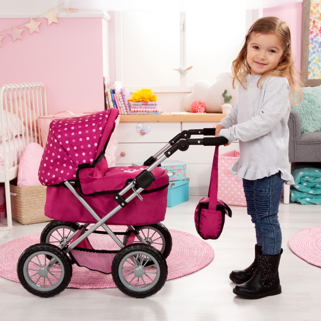 Trendy on kaunis nukenvaunu moderneissa väreissä, jotka sopivat 46 cm:n pituisille nukeille. Säädettävän kahvan ansiosta tämä vaunu sopii jo pienille nukkeintoilijoille. Lisäksi vaunut voi taittaa nopeasti kokoon, jolloin ne on helppo kuljettaa. Integroitu säilytyskori on kätevä, kun haluat säilyttää kaiken tarvittavan nuken kanssa seikkaillessasi.
