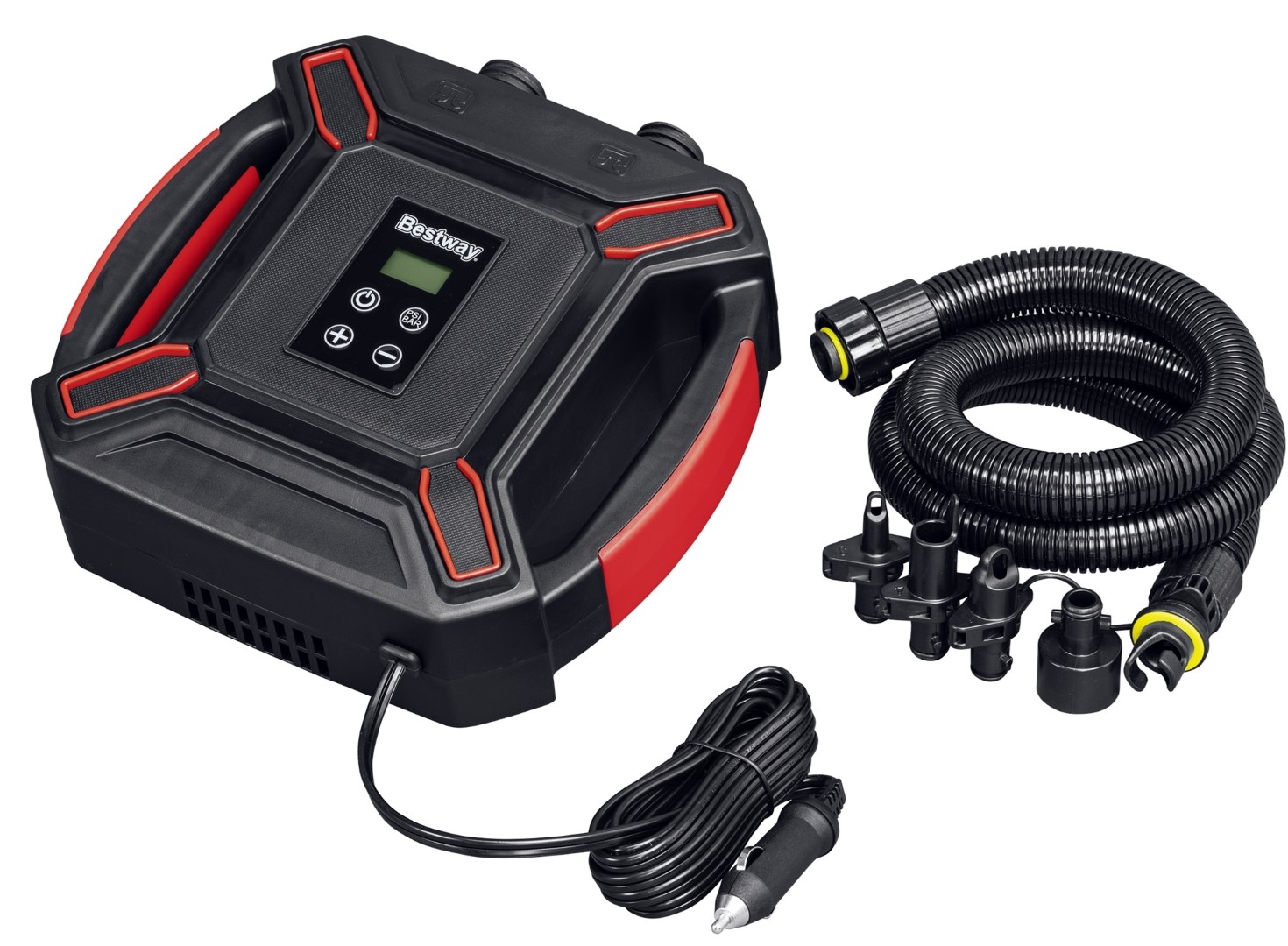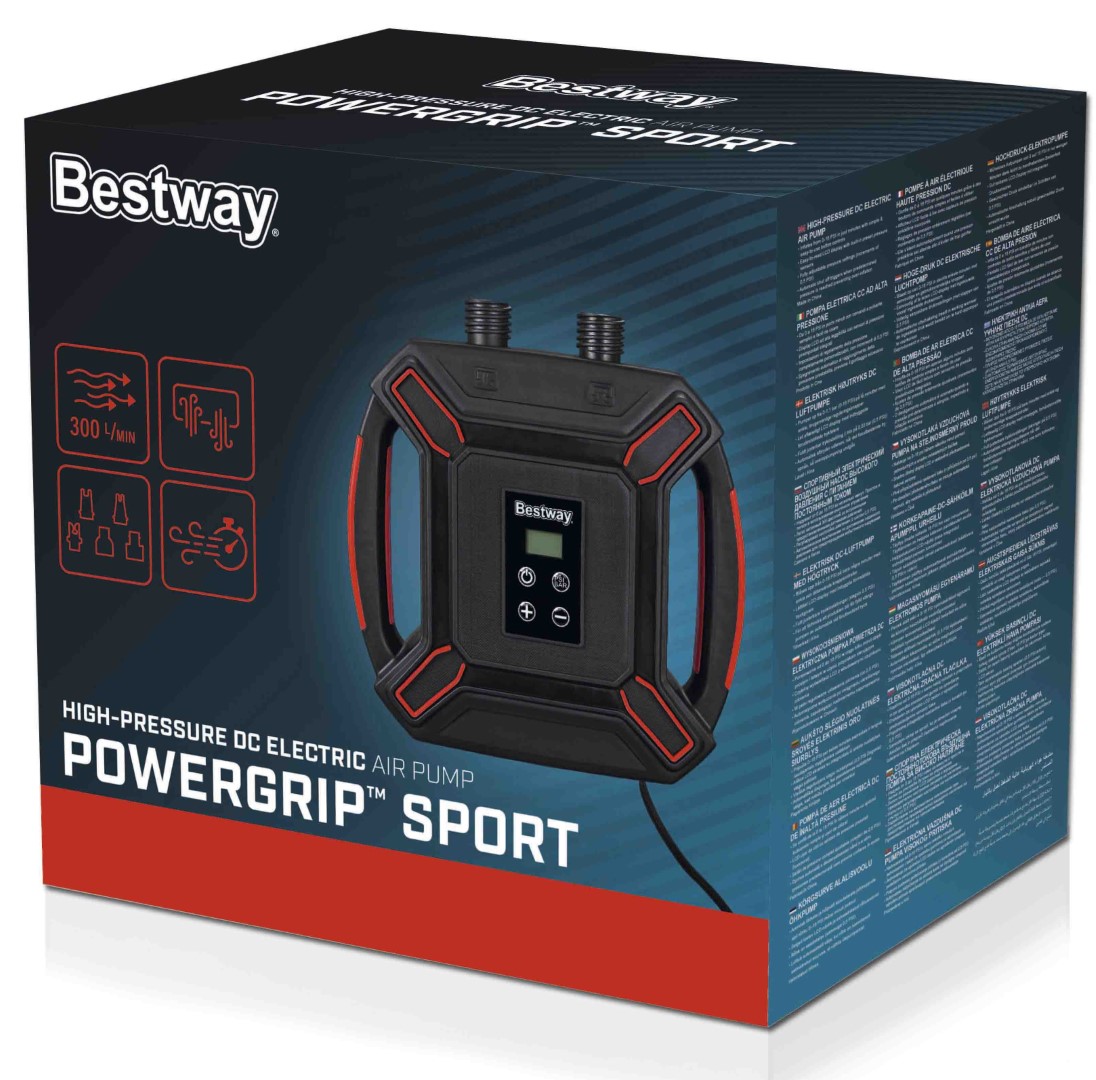 Säästä energiasi veteen ja ota työ pois SUP-laudan täyttämisestä Bestway® PowerGrip™ Sport High-Pressure DC Electric Air Pump -ilmapumpulla. Tämä pumppu mahdollistaa nopean ja helpon täyttöasteen 0-16 PSI muutamassa minuutissa. Helppokäyttöisten painikkeiden ja helppolukuisen LCD-näytön ansiosta voit vain asettaa haluamasi paineen ja antaa pumpun hoitaa loput. Automaattinen poiskytkentätoiminto käynnistyy, kun ennalta määritetty paine on saavutettu, mikä estää ylipumppauksen. Tämä pumppu on ihanteellinen SUP-laudoille tai muille esineille, joissa on korkeapaineventtiilit, ja se voidaan kytkeä suoraan auton tai veneen 12 V:n pistorasiaan, jolloin sitä on helppo käyttää matkalla. Pumppu on yhteensopiva matalapaineisten esineiden kanssa mukana toimitettujen 5 sovittimen ansiosta, joten voit puhaltaa kaikki esineet samalla pumpulla. Kannettava, kompakti ja kevyt, tämän pumpun muotoilu on tehty käytettäväksi missä ja missä tahansa! Älä jää paitsi hauskanpidosta ja pääset nopeammin veteen Bestway PowerGrip Sport High-Pressure DC -sähkökäyttöisen ilmapumpun avulla.