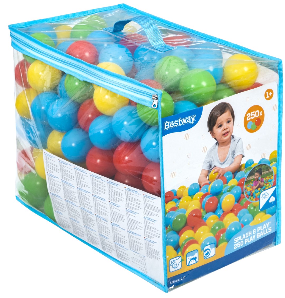 Bestway® Splash & Play™ 250 -leikkipallot tuovat iloa ja oppimista neljässä kirkkaassa värissä! Nämä pallot ovat leikkikentän ehdoton klassikko ja sopivat monenlaisiin leikkeihin. Ne toimivat mainiosti sellaisenaan, mutta ovat myös täydellinen lisä moniin Bestwayn muihin tuotteisiin. Värikkäitä palloja voi käyttää pallomerissä, leikkialtaissa – veden kanssa tai ilman – kylpyhetkissä tai ihan vain lattialla lajitteluun, vierittämiseen ja leikkimiseen. Ne tarjoavat pienen lapsen kehitykselle monipuolista tukea: pallojen kiinni ottaminen, heittäminen ja niiden perässä liikkuminen kehittävät silmä-käsi-koordinaatiota ja motorisia taitoja hauskalla tavalla. Yksinkertaiset mutta kiehtovat leikkipallot innostavat lasta liikkumaan, tutkimaan ja oppimaan. Ne on valmistettu kevyestä, kestävästä ja ilmatäytteisestä materiaalista, ja sileät saumat tekevät niistä miellyttäviä käsitellä. Samalla lapset oppivat tunnistamaan värejä – leikin lomassa.