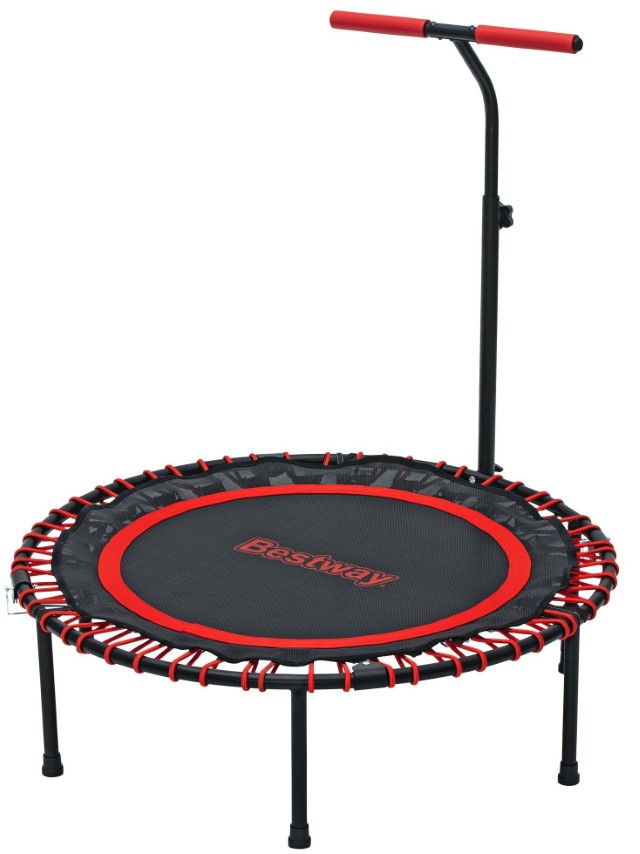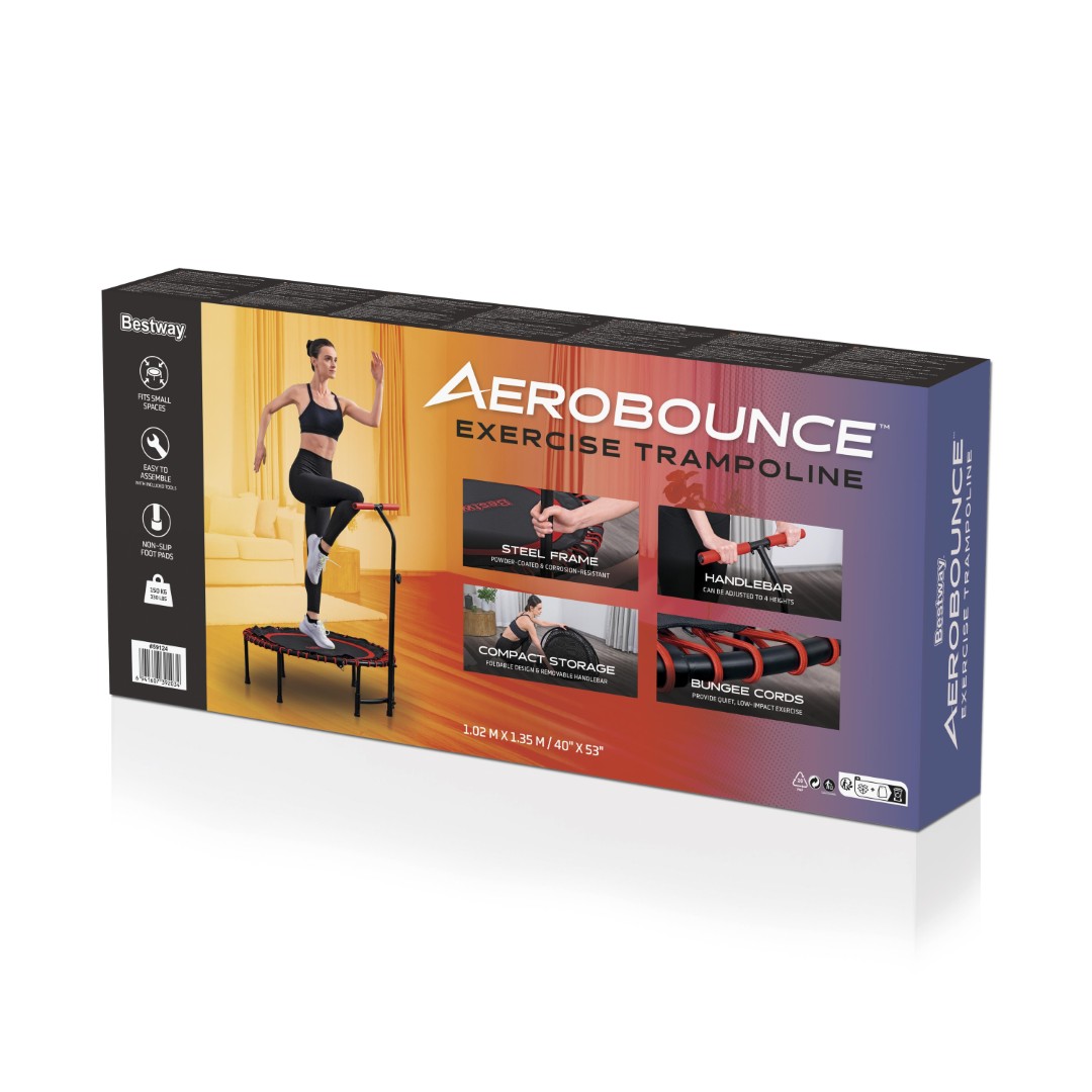 Hyppää treenin pariin hauskalla tavalla Bestway® AeroBounce™ -fitnesstrampoliinin avulla! Tämä trampoliini sopii aikuisille aina 150 kiloon asti, ja sen kestävä, pulverimaalattu teräsrunko sekä laadukkaat joustonarut takaavat hiljaisen ja niveliä säästävän harjoittelun. AeroBounce on helppo koota mukana tulevilla työkaluilla, ja sen T-mallinen tuki tarjoaa lisävakautta. Korkeutta voi säätää neljään tasoon (1,04–1,35 m), jotta otteesta tulee mukava ja tukeva.
