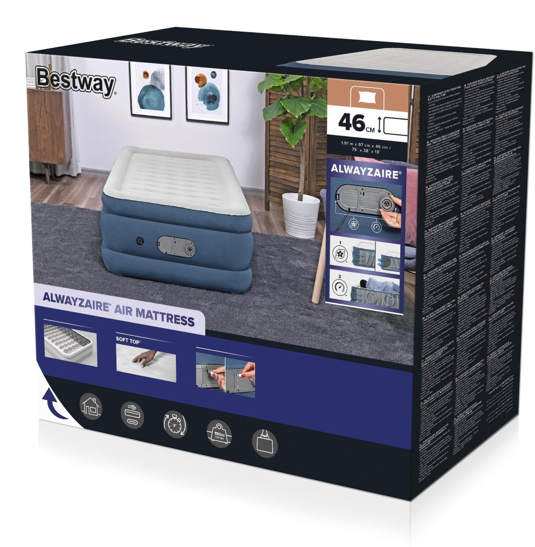 Herää vaaleanpunaiseen pilveen Bestway® AlwayzAire® -ilmapatjalla! Tämä kaksoiskokoinen ilmapatja on kestävä ja pysyy ilmatäytteisenä koko yön ajan tarjoten erinomaisen mukavuuden ja tuen.