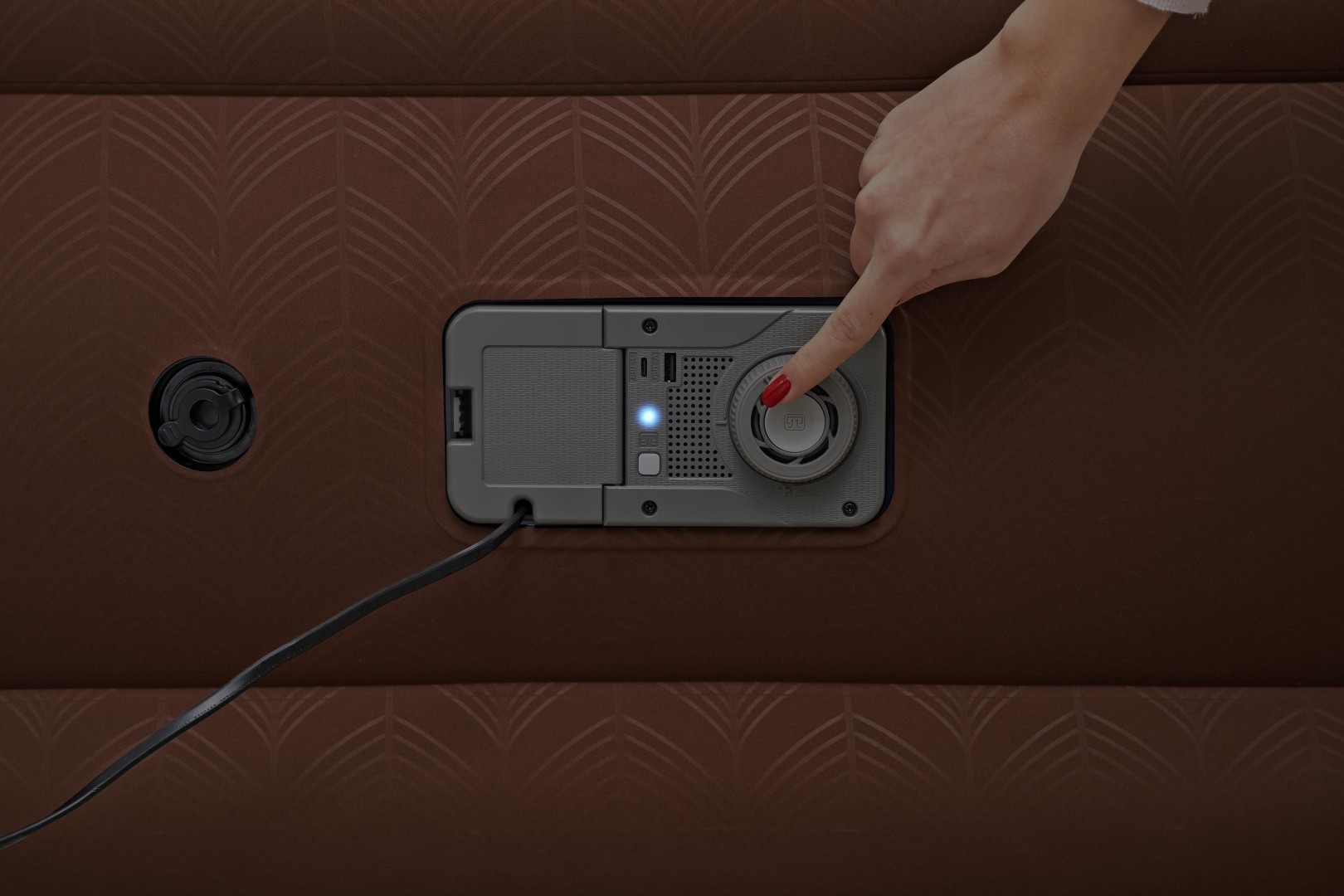 AlwayzAiren kaksoispumppu varmistaa, että ilmapatjasi pysyy täytettynä koko yön. Sisäiset anturit tarkkailevat ilmanpainetta, ja pumppu puhaltaa ilmapatjan äänettömästi uudelleen nukkuessasi, jotta säilytetään aiottu kiinteys, etkä koskaan herää lattialla. Kaksoispumppujärjestelmä täyttää ilmapatjan vain 3 minuutissa, mikä vähentää ilmahäviötä ja estää ylitäytön. Voit myös säätää patjan lujuutta kääntämällä säätöpyörää haluamallesi asetukselle. Lisäksi siinä on USB-A- ja USB-C-portit älylaitteiden helppoa ja kätevää lataamista varten. Parhaiden tulosten saavuttamiseksi ilmapatjan on oltava kytkettynä verkkovirtaan koko yön. Ei virtaa, ei ongelmaa - tämä ilmapatja on yhteensopiva myös käsikäyttöisten pumppujen kanssa täyttöä varten, mutta sähkövirta tarvitaan, jotta kaksoispumppuanturit toimisivat kunnolla.