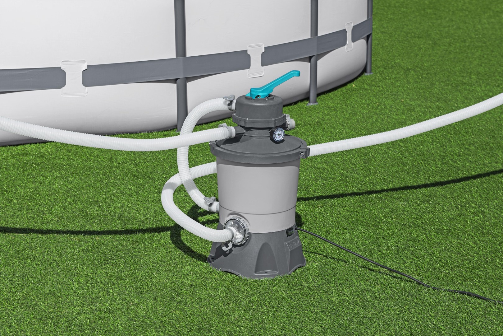 Pidä allasvesi kristallinkirkkaana ja puhtaana Bestway® 3,596 L hiekkasuodatinpumpun avulla! Tämä tehokas pumppu kestää kauemmin ja vaatii vähemmän huoltoa kuin perinteinen suodatinpumppu. Se käyttää joko kvartsihiekkaa tai Bestway Polysphere™ Pool Filter Balls -altaansuodatinpalloja (kumpikaan ei sisälly toimitukseen) suodattaakseen roskat pois altaastasi, ja se sisältää suodatinkorin, joka pidättää suurempia esineitä ja lisää pumpun tehokkuutta ja käyttöikää. Kestävä, korroosionkestävä pumppu on valmiiksi koottu, joten kytke se vain virtalähteeseen ja käynnistä se, niin altaasi suodatus paranee. Tämä hiekkasuodatinpumppu on yhteensopiva 1 100-18 100 litran altaiden kanssa. Siinä on myös 6-asentoinen kahva, joten voit helposti vaihtaa suodatustoimintoa suodattimen, suljetun, takaisinhuuhtelun, huuhtelun, tyhjennyksen ja kierron välillä. Tämä helppo, vähän huoltoa vaativa pumppu hoitaa likaisen työn, jotta voit keskittyä muistojen tekemiseen perheesi kanssa!