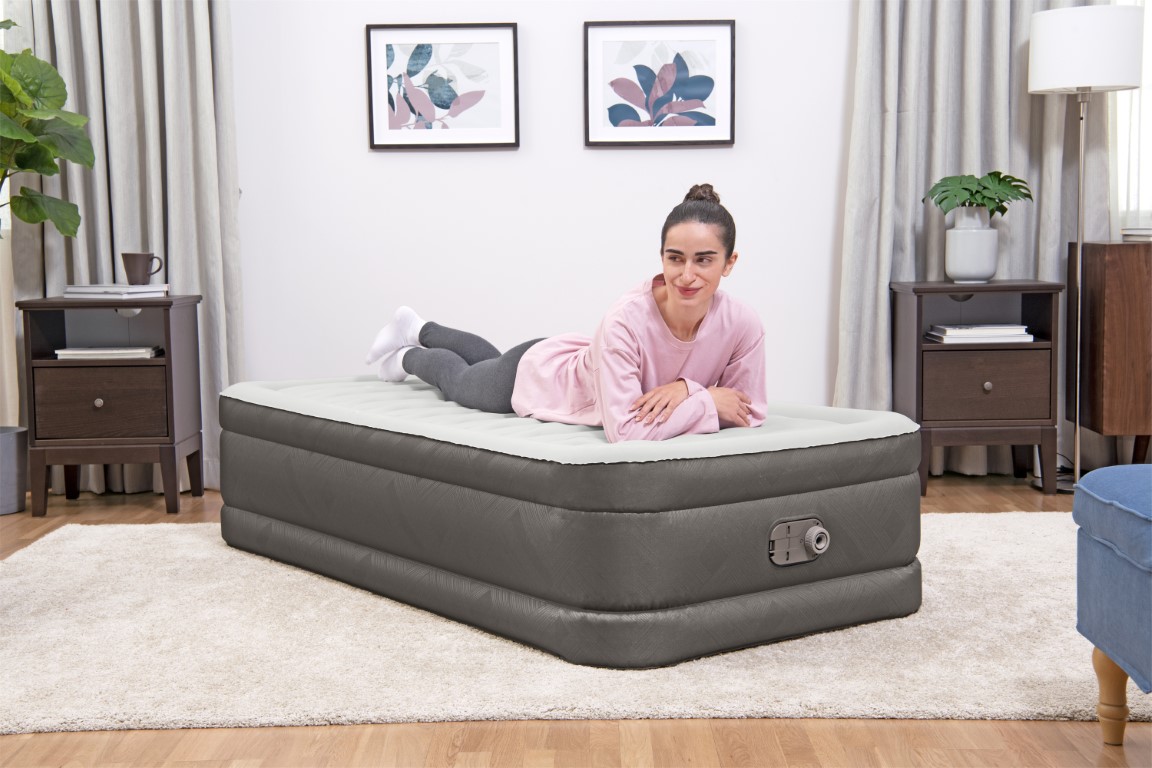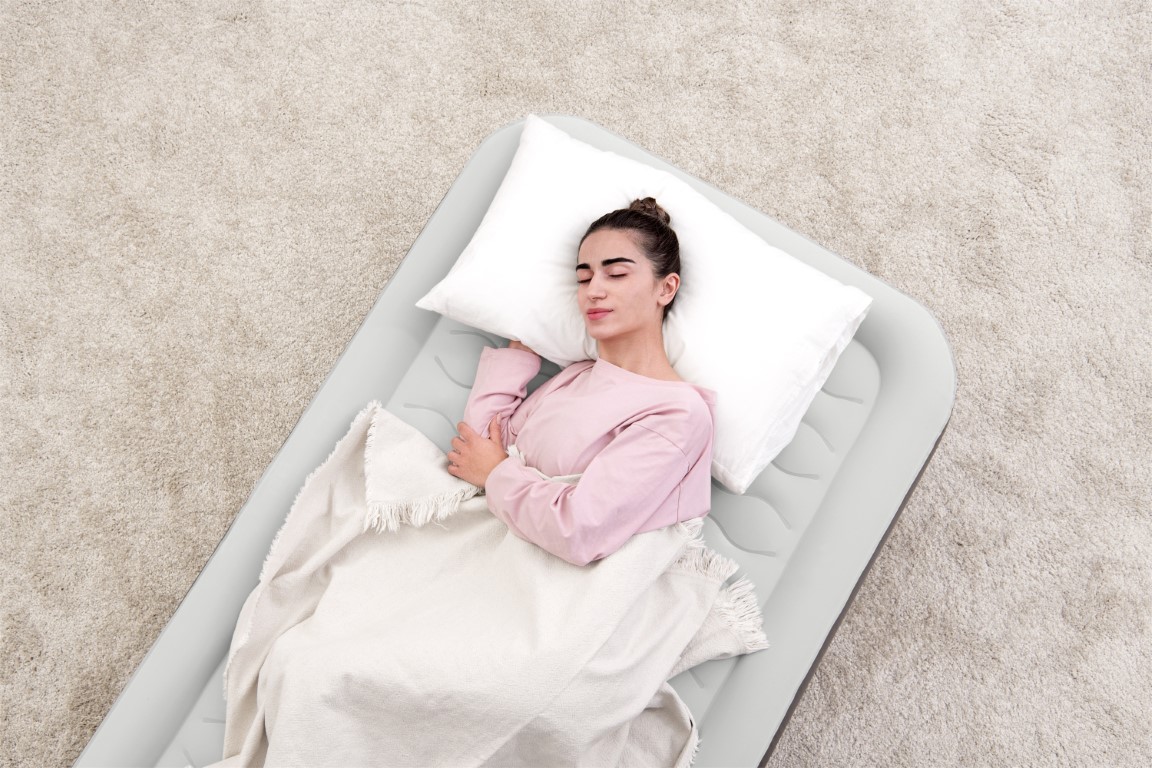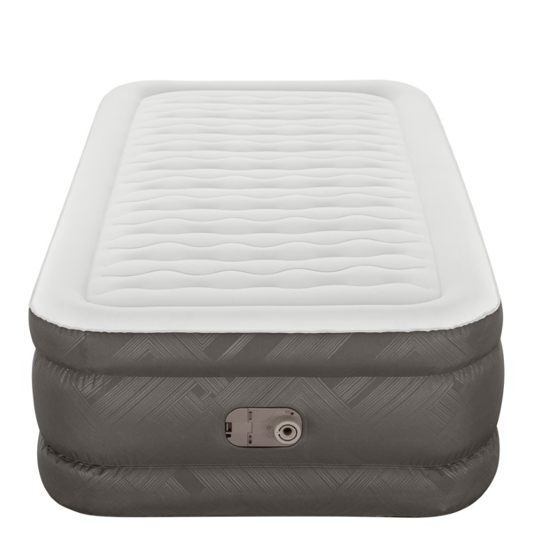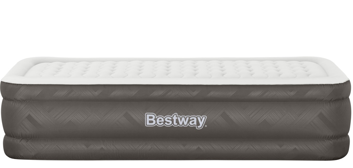 Kestävässä ja mukavassa Bestway® Fortech™ -ilmapatjassa on venyvä pinta, joka on sileä ja pehmeän tuntuinen! Tämä Twin-patja on vahva mutta kevyt, joten se on paras valinta. Ultra-Fresh™-antimikrobikäsittelyn ansiosta sänkysi on suojattu hajuja aiheuttavien bakteerien, homeen ja homeen kasvua vastaan pinnalla.