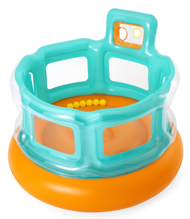 Lapset pomppivat ilosta Bestway® Hops 'N Hoops Bouncerin kanssa! Tämä pomppulinna sisältää hauskan pallonheitto-pelin, johon kuuluu 6 leikkipalloa. Lapset rakastavat leikkiä ja kurkistaa peitetyn sisäänkäynnin kautta, josta voi ryömiä sisään. Vanhemmat arvostavat yksinkertaista sisäänkäyntiä, joka tuo lisäturvaa lasten pomppiessa ja leikkiessä! Tämä ilmatäytteinen pomppulinna on varustettu läpinäkyvillä PVC-seinillä, joten voit nähdä, kuinka lapset pomppivat iloisesti. Hops 'N Hoops Bounceria voi käyttää sisällä tai ulkona, ja se tarjoaa tuntikausien hauskanpitoa ympäri vuoden. Lapset eivät ainoastaan nauti pomppimisesta ja pelistä mukana tulevilla palloilla, vaan kehittävät myös motorisia taitojaan, käden ja silmän koordinointia sekä sorminäppäryyttä. Anna leikin olla opettava väline, joka vie lapsesi kehityksessä eteenpäin. Lisää Hops 'N Hoops Bouncer leikkihuoneeseesi tai takapihaasi, ja tee lapsesi päivästä entistä hauskempi!