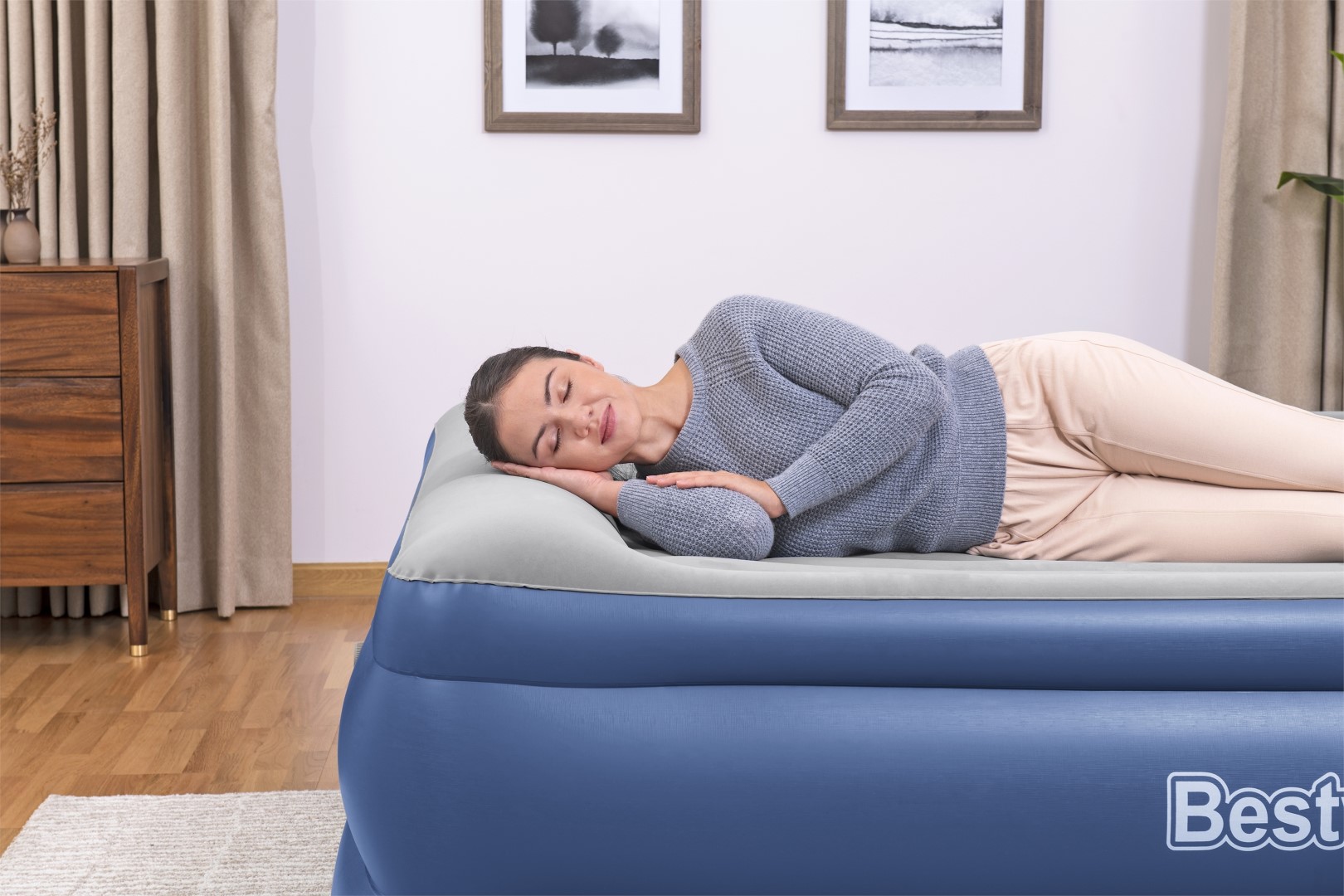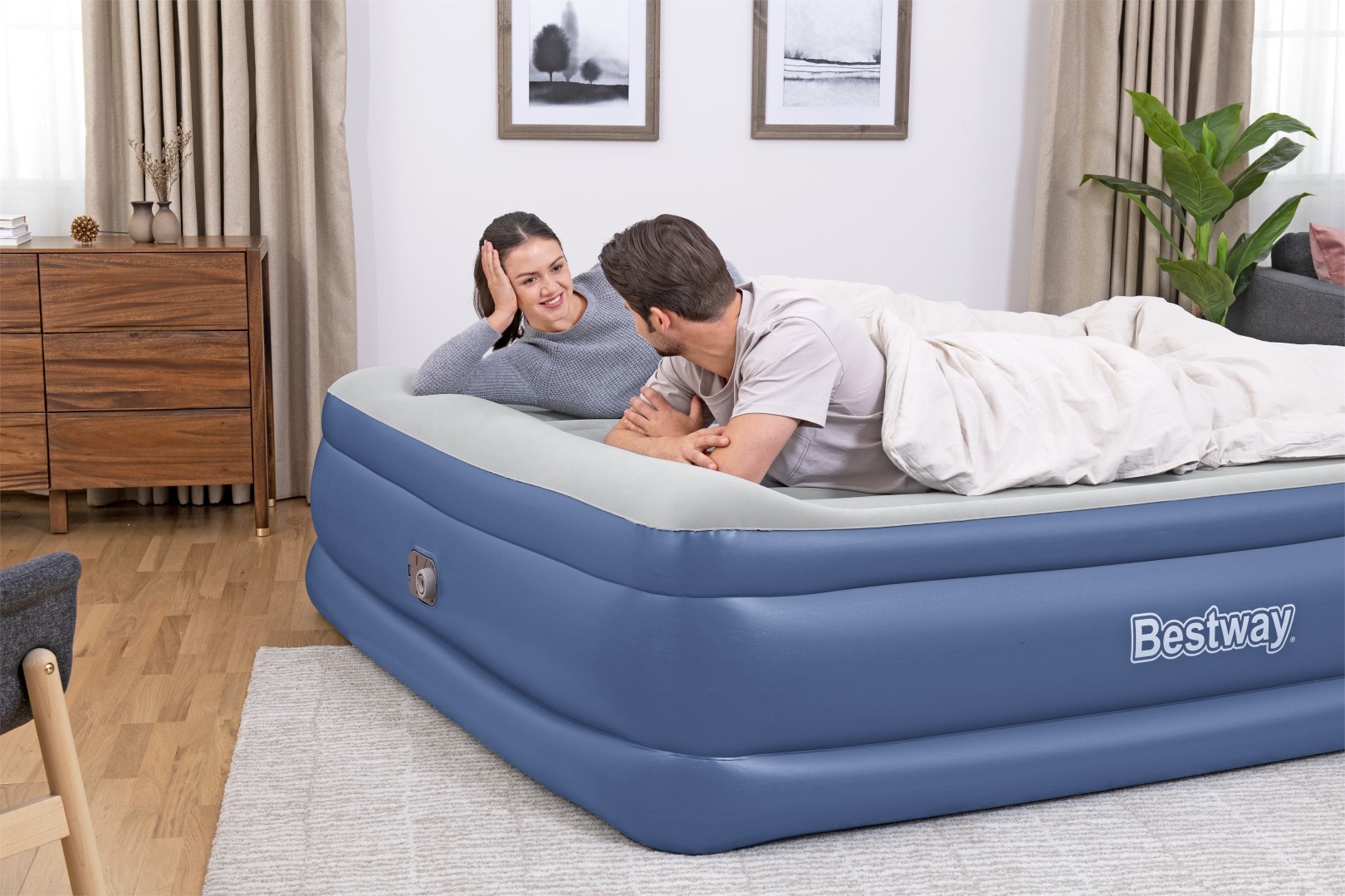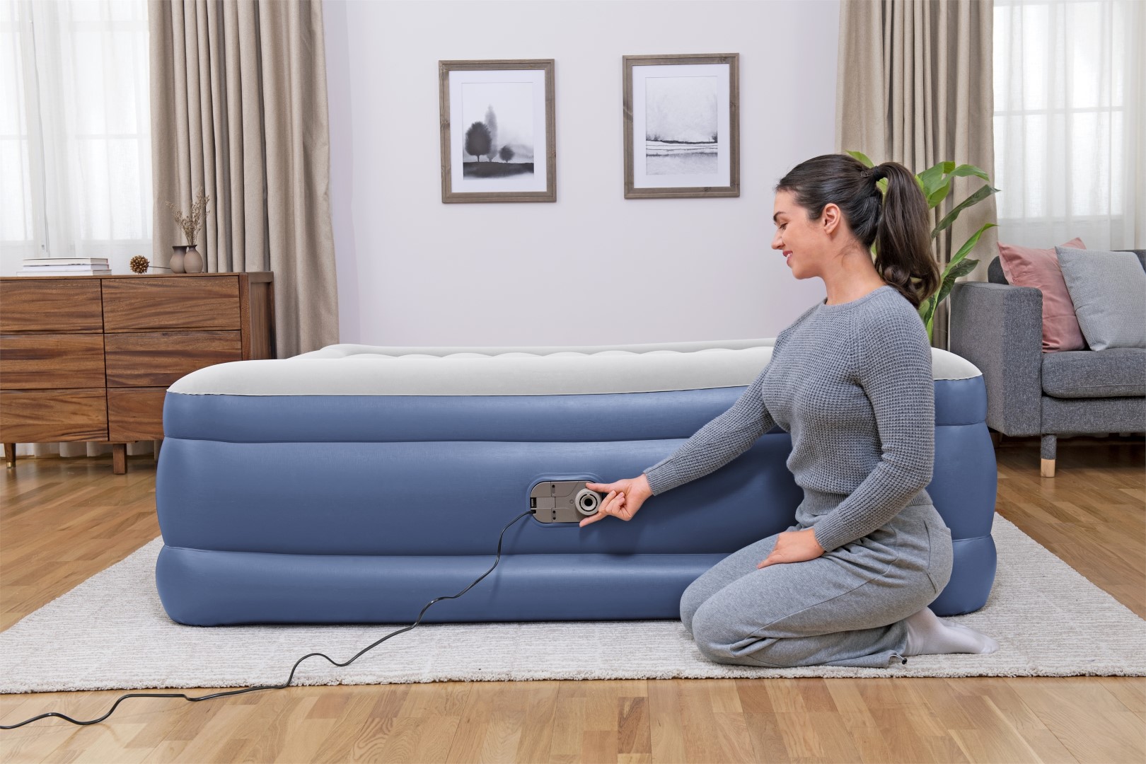 Herää uudistuneena ja virkistyneenä Bestway® Tritech™ -ilmapatjalla! Tämä king-size-vuode lupaa lujuutta, kestävyyttä ja mukavuutta koko yön. Sen kompaktin koon ja sisäänrakennetun pumpun ansiosta sitä on nopea ja kätevä käyttää aina tarvittaessa. Ja Ultra-Fresh™-antimikrobikäsittelyn ansiosta sänkysi on suojattu hajuja aiheuttavien bakteerien, homeen ja homeen kasvua vastaan pinnalla.