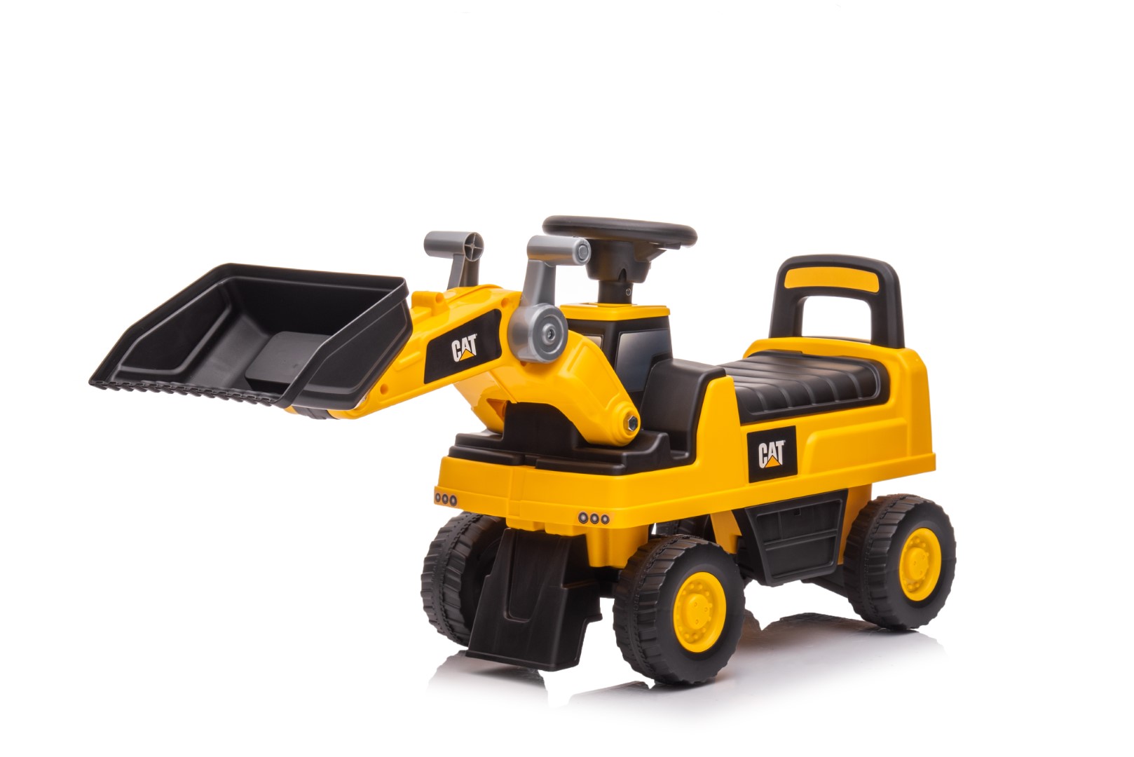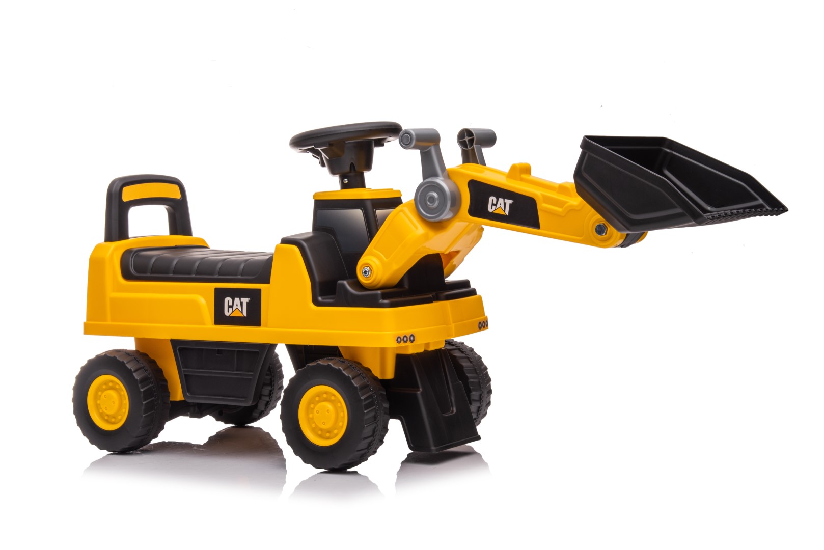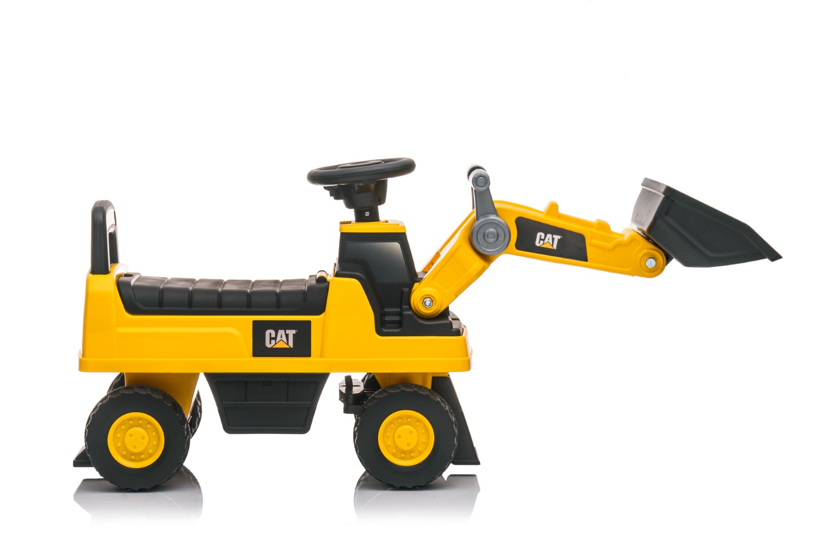 CAT Caterpillar -kaivinkonepotkuauto on suunniteltu näyttämään aivan aidolta työmaakoneelta. Sen uskottava ulkonäkö, värit ja yksityiskohdat tuovat rakennustyömaan tunnelman suoraan lapsen leikkeihin. Lapsi voi ohjata omaa “työmaataan” ja seikkailla mielikuvituksen voimalla tuntikausia.