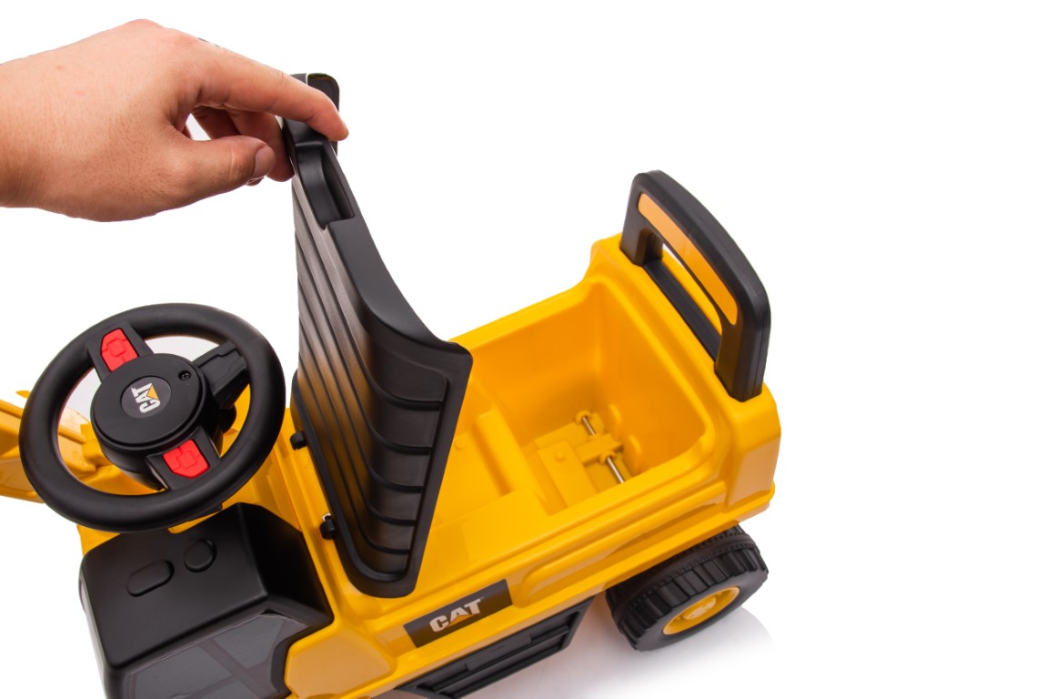 CAT Caterpillar -kaivinkonepotkuauto on suunniteltu näyttämään aivan aidolta työmaakoneelta. Sen uskottava ulkonäkö, värit ja yksityiskohdat tuovat rakennustyömaan tunnelman suoraan lapsen leikkeihin. Lapsi voi ohjata omaa “työmaataan” ja seikkailla mielikuvituksen voimalla tuntikausia.