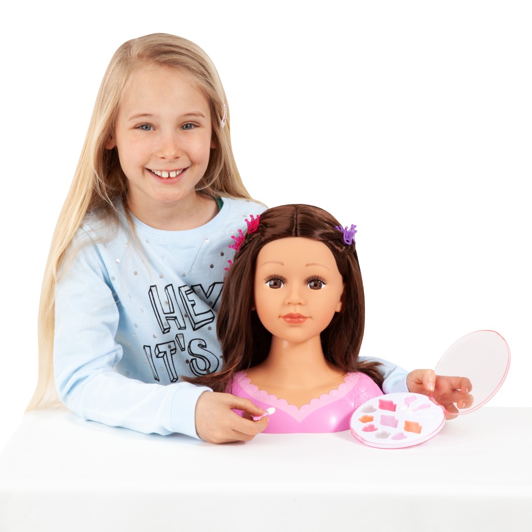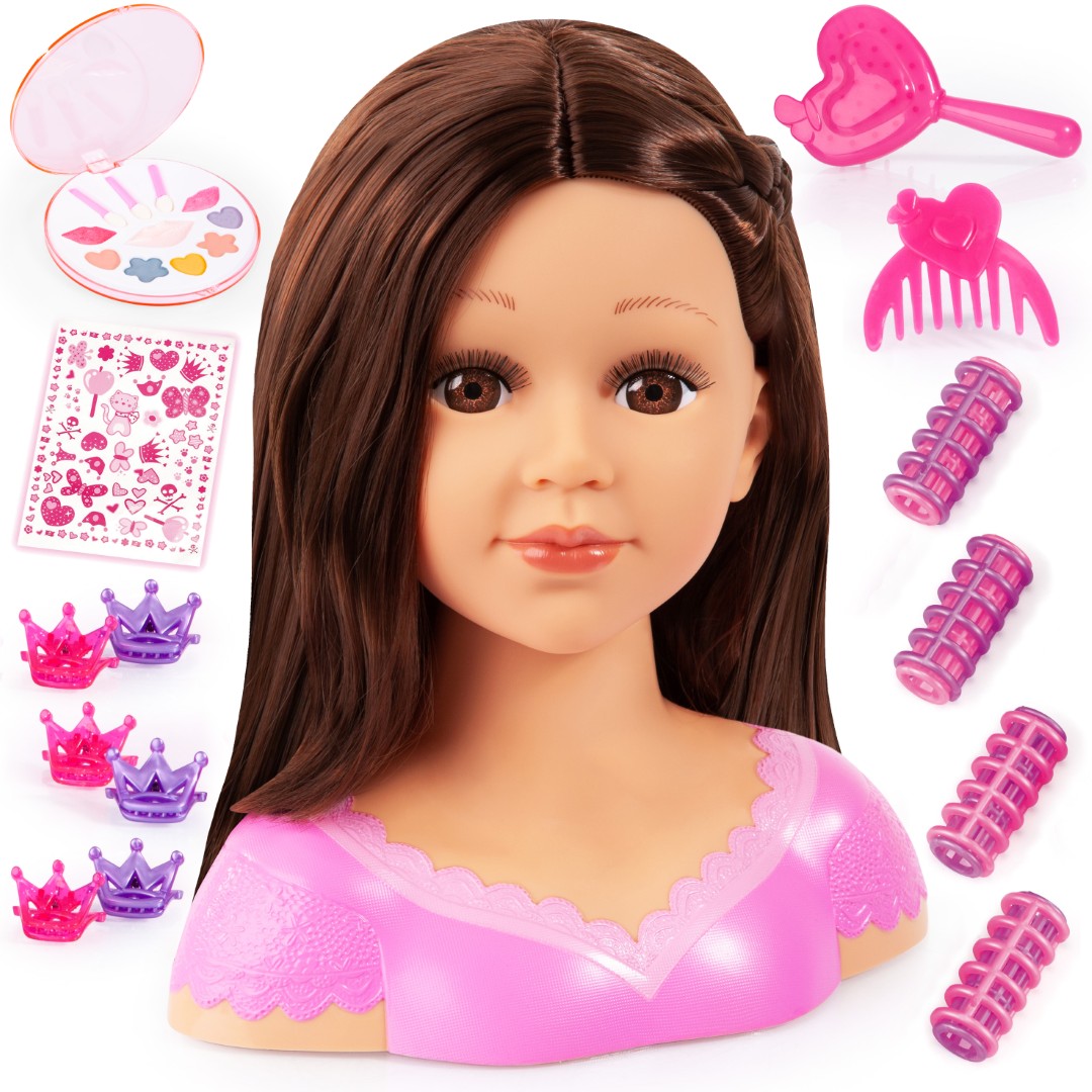 Charlene Super Model -stylingpää (27 cm) tekee kaikista tyylittelyideoistasi totta. Voit kokeilla monia erilaisia kampauksia. Mukana tulevat harja, kampa, hiusklipsit ja kiharrin ovat erittäin hyödyllisiä täydellisen tyylin luomisessa. Kauniita kampausideoita löytyy myös pakkauksen showboxista. Glamourin viimeistelee upea meikki! Pitkien ripsien ja tyylikkään kampauksen ansiosta Charlene on todellinen kaunotar. Mukana tulee myös tarroja. Toimitetaan kauniissa showbox-pakkauksessa.