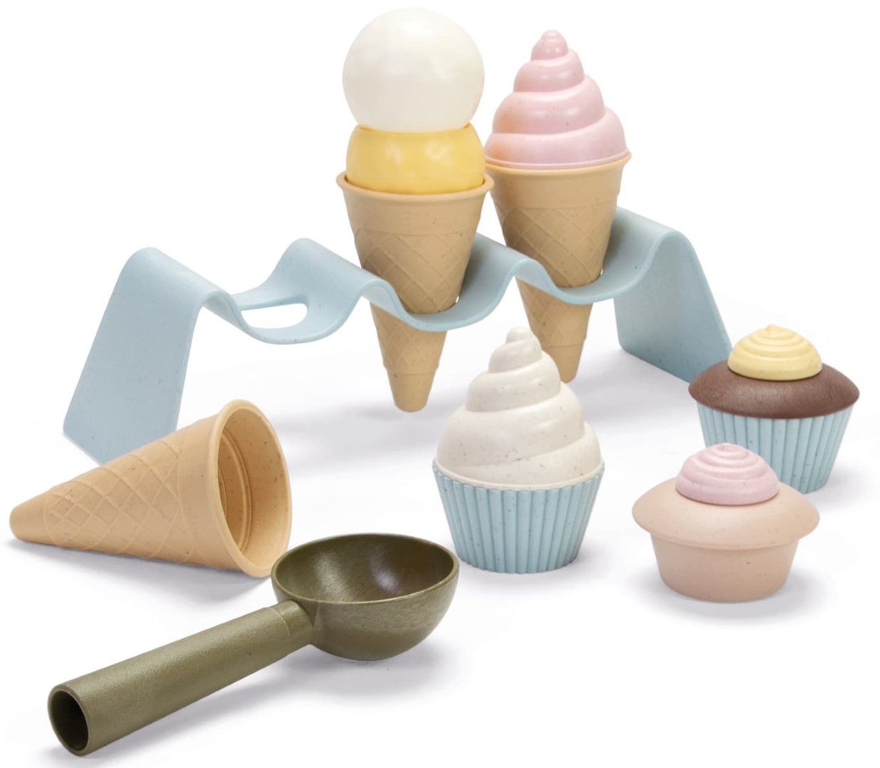 Dantoy BIO jäätelösetti on viehättävä 15-osainen lelukokoelma, joka tuo jäätelökaupan taianomaisen maailman lastenhuoneeseen. Setti on valmistettu kestävästä sokeriruo'osta ja sisältää yli 90 % biopohjaista materiaalia, joten se on ympäristöystävällinen valinta laadusta tinkimättä. Pehmeät, luonnolliset pastellivärit vaaleansinisen, beigen ja vaaleanpunaisen sävyissä antavat setille kutsuvan ja esteettisen ilmeen.