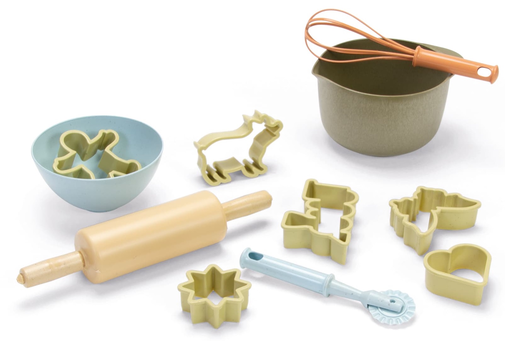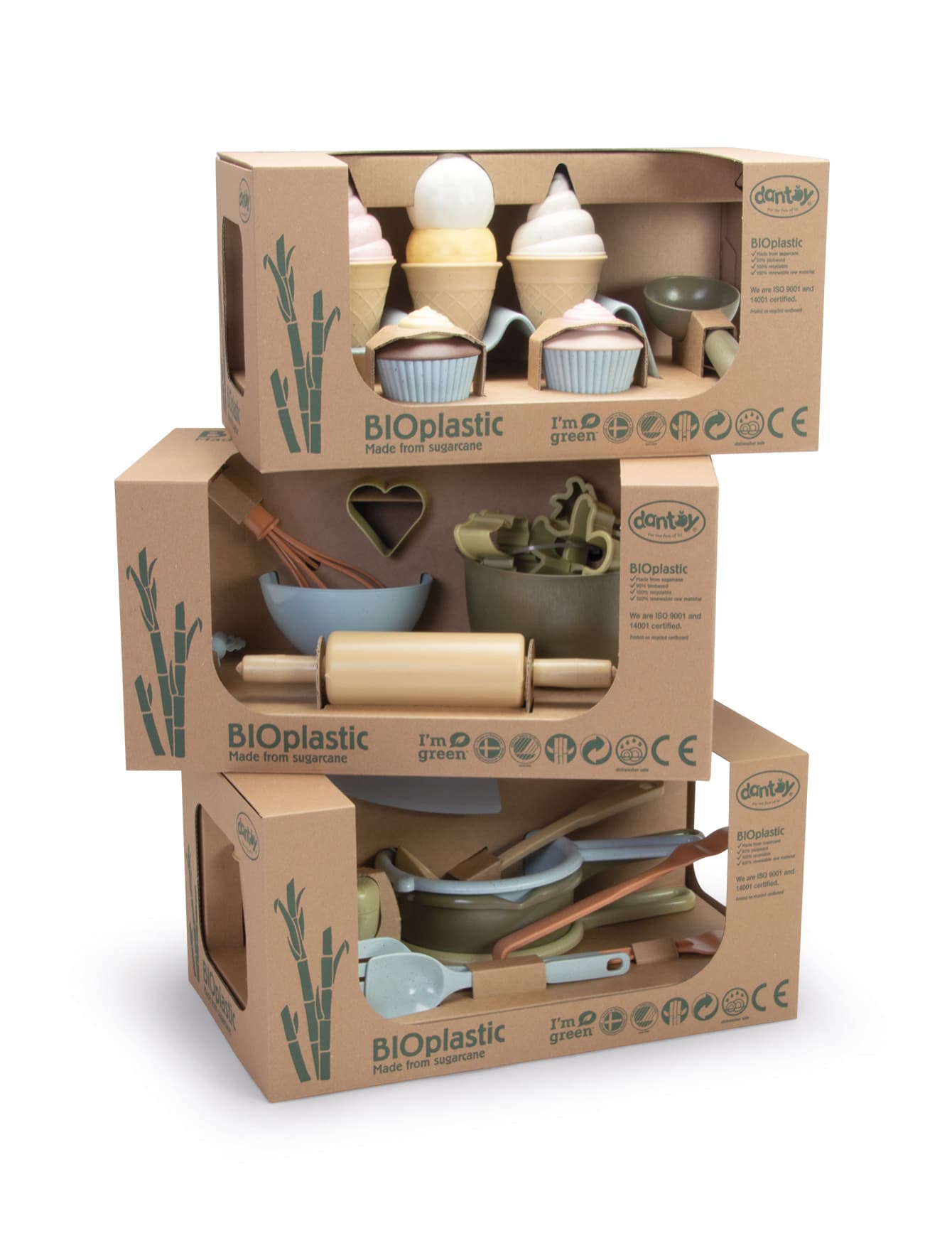 Tämä ympäristöystävällinen leivontasetti dantoy BIO -sarjasta koostuu 11 osasta, ja se on valmistettu vähintään 90-prosenttisesti sokeriruo'osta saadusta biopohjaisesta materiaalista. Setti on luonnollisissa, rauhallisissa värisävyissä, ja se sisältää kaikki pienille leipojille tarvittavat välineet: kulhot, vatkaimen, lastan ja erilaisia leikkureita, joiden avulla leivonnan maailmaan tutustuminen on hauskaa.