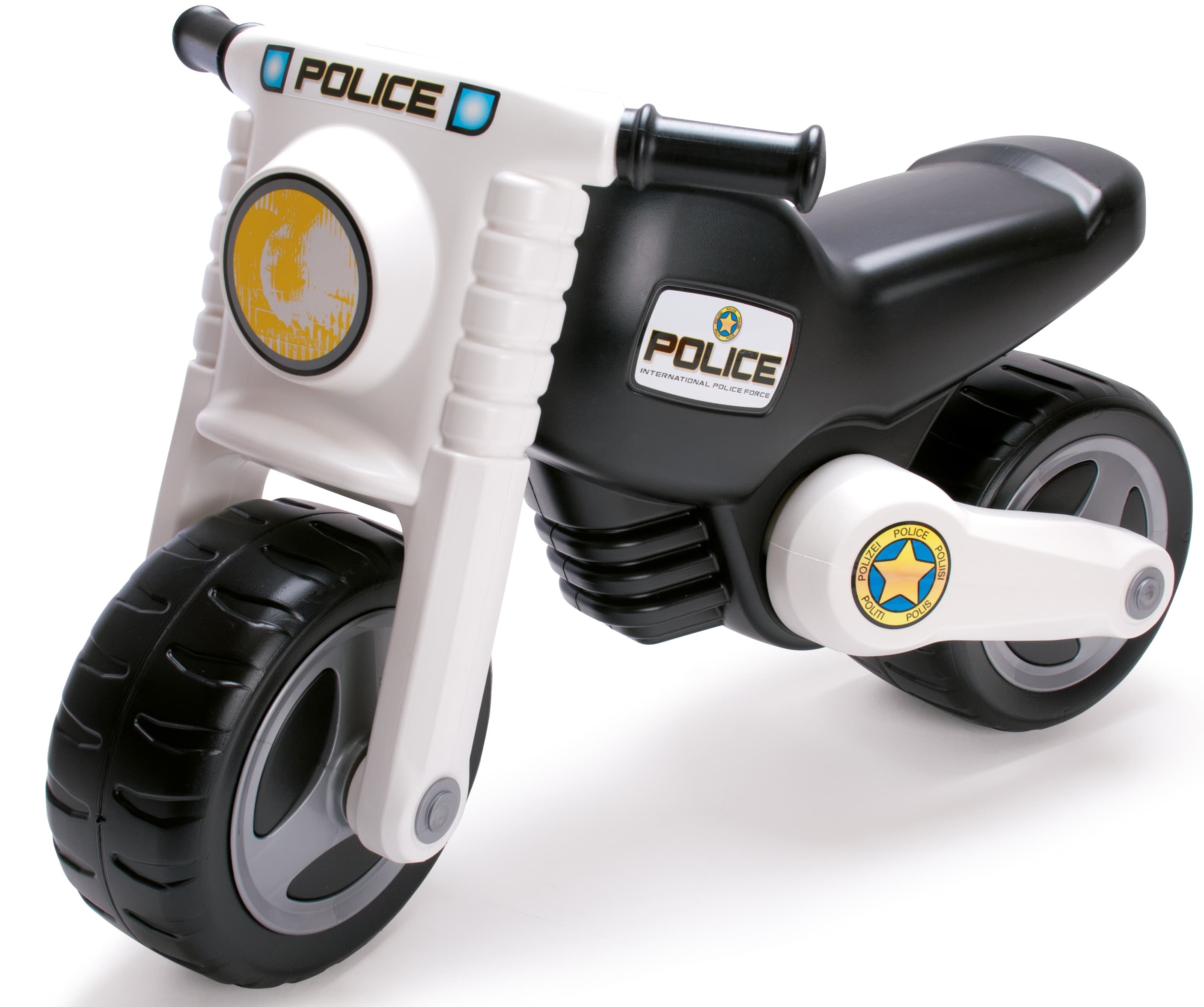 Klassinen poliisimoottoripyörä on täydellinen kulkuneuvo 3-vuotiaille ja sitä vanhemmille seikkailunhaluisille pikkusieluille. Kaksipyöräisessä moottoripyörässä on tyylikäs valkoinen muotoilu harmailla yksityiskohdilla, musta istuin ja erottuva keltainen ajovalo, joka antaa sille autenttisen ilmeen.