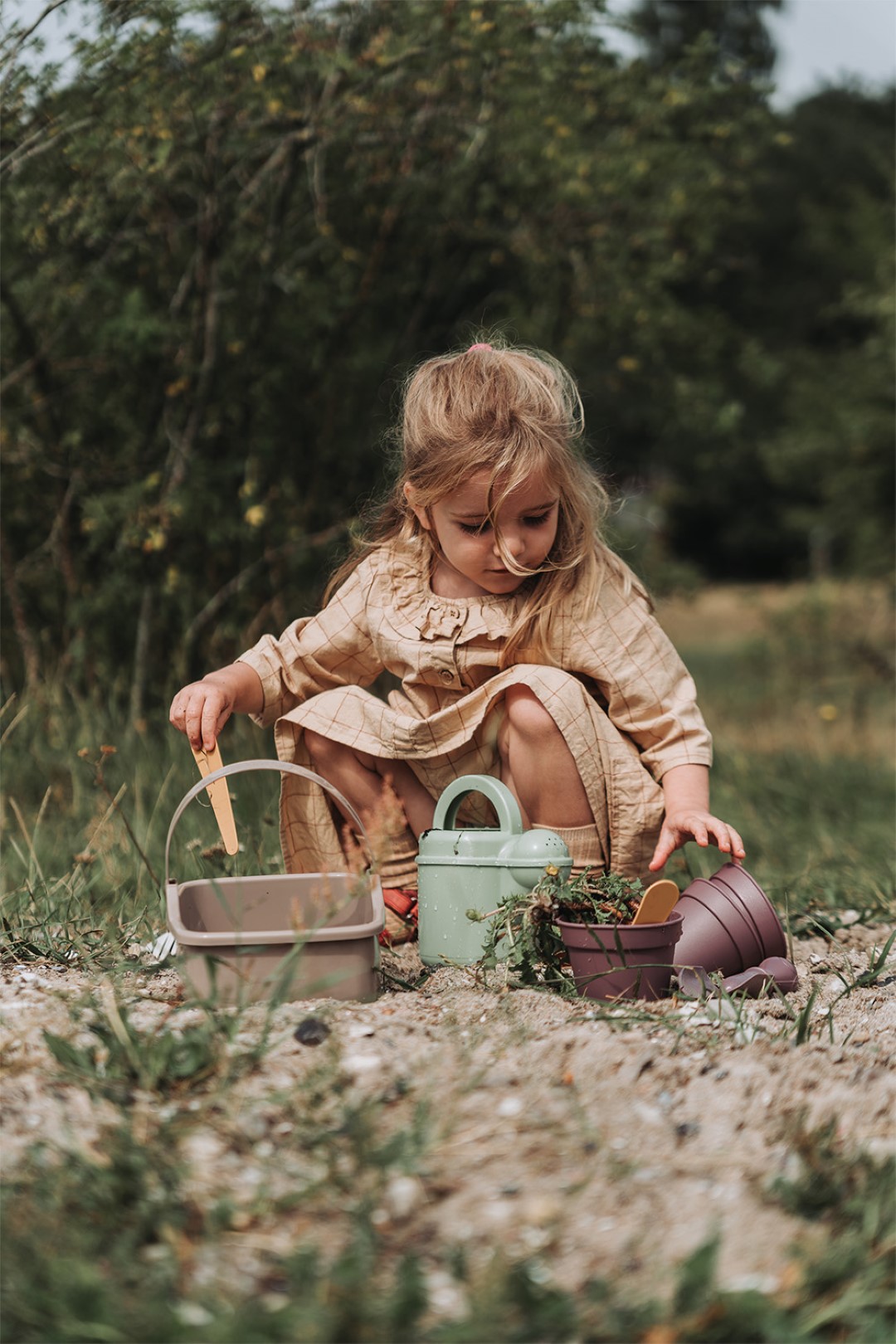 Green Garden -universumi kutsuu lapset leikkimään monilla puutarhanhoitoon ja vihannesviljelyyn liittyvillä jokapäiväisillä tehtävillä. Kasvisarja, jossa lapset voivat kasvattaa, hoitaa ja vaalia omia kasvejaan ja vihanneksiaan. Se sopii sekä leikkiin että elävien kasvien kasvattamiseen, jossa vihersormet voivat kukoistaa. Tutustukaa yhdessä siihen, miten puutarhan kasvit ja värit muuttuvat vuoden mittaan. Istutussarja on valmistettu Nordic Swan -ympäristömerkitystä muovista. Setti koostuu 11 palasta, joiden värit ovat kauniita ja rauhallisia Green Garden -värejä. Suositeltava ikäryhmä tälle tuotteelle on 2+ vuotta.