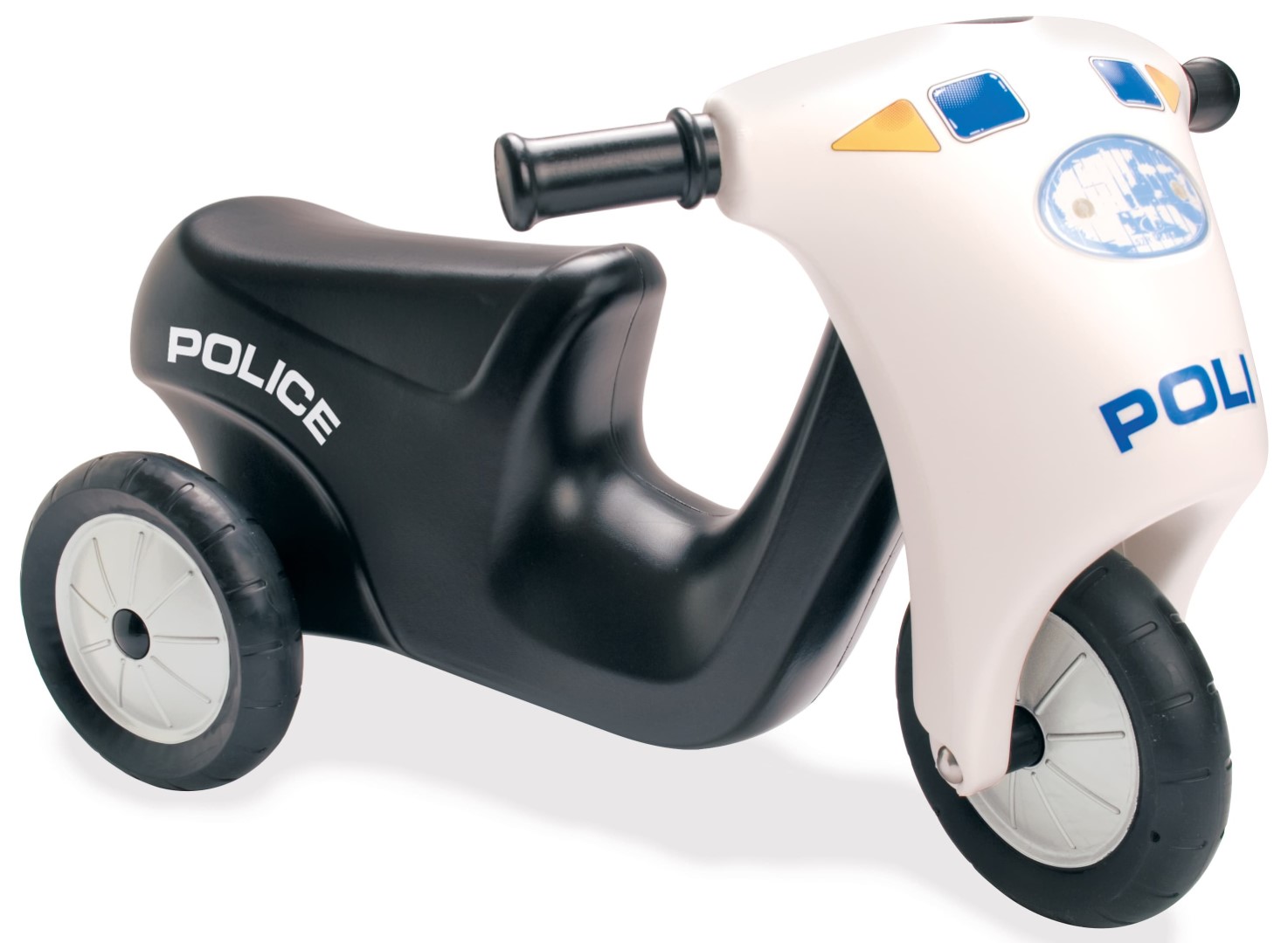 Dantoy-poliisiskootteri kumipyörillä on täydellinen kulkuneuvo nuorille koulutettaville poliiseille. Tässä klassisissa mustavalkoisissa poliisiväreissä suunnitellussa vankassa ajoneuvossa on kolme vakaata pyörää, jotka takaavat optimaalisen tasapainon ja turvallisuuden pienille lapsille.