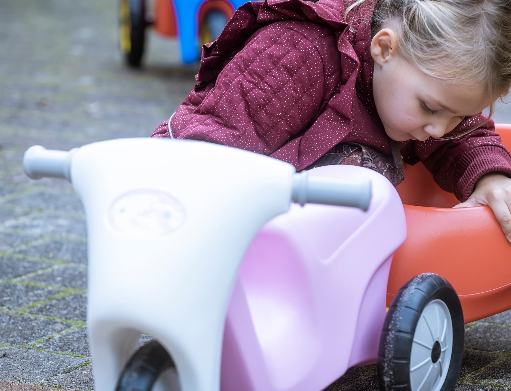 My Little Princess -skootteri on viehättävä kolmipyöräinen tasapainopyörä vaaleanpunaisen ja valkoisen sävyissä, joka sopii täydellisesti vähintään 2-vuotiaille pienille seikkailijoille. Kolmen vakaan pyöränsä ansiosta se tarjoaa turvallisen alun lapsen ensimmäisille itsenäisille ajeluille ja on ihanteellinen tasapainon ja koordinaation kehittämiseen.