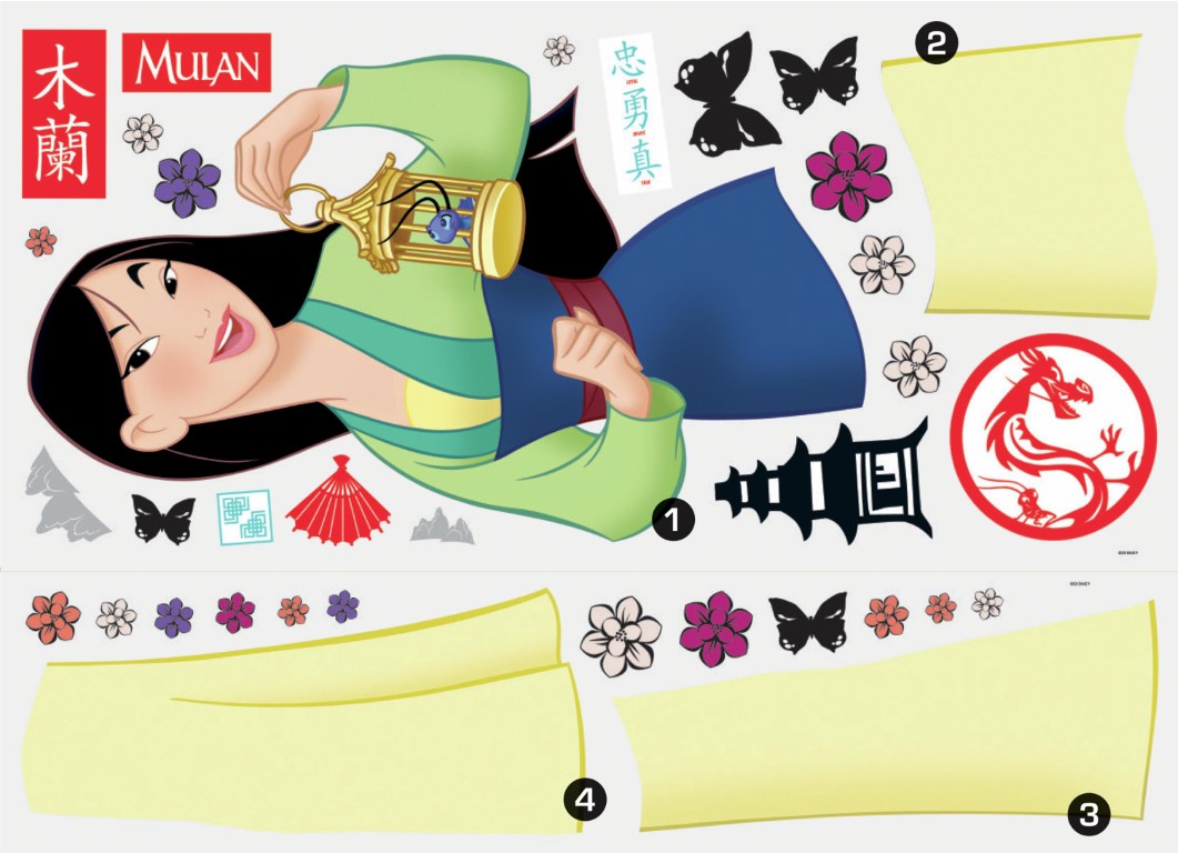 | Tyyppi: | Disney Mulan Giant seinätarrat |