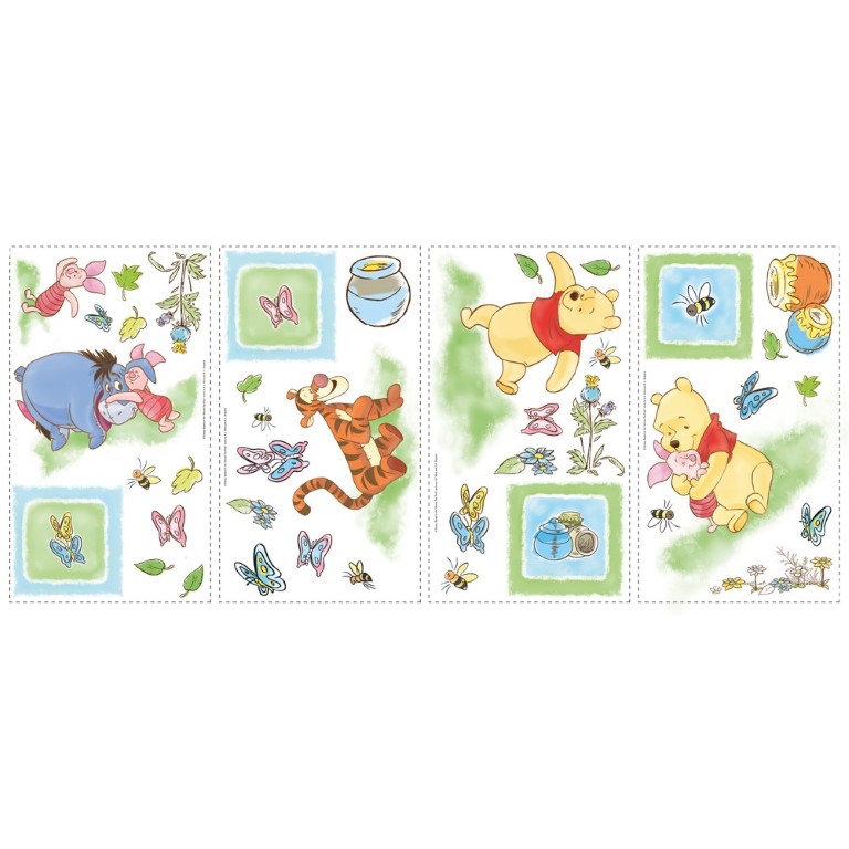 Juhli ystävyyssuhteita, jotka ovat ilahduttaneet sukupolvia näillä Nalle Puhin ja hänen ystäviensä irrotettavilla ja kiinnitettävillä seinätarroilla. Jokaisessa sarjassa on Puh, Tikru, Ihaa ja Nasu sekä söpöjä pieniä tarroja perhosista, lehdistä ja mehiläisistä. Pehmeät pastellivärit tekevät näistä irrotettavista ja uudelleenkäytettävistä tarroista ihanan valinnan lastenhuoneeseen. Yhdistä tarrat yhteensopivien irrotettavien reunusten ja seinäpaneelien kanssa, niin saat täydellisen Nalle Puh -teeman suoraan seinillesi.