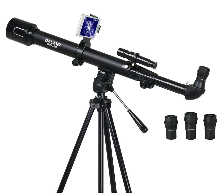 GALAXY TRACKER 525 suurentaa jopa 525-kertaiseksi riippuen siitä, mitä linssejä yhdistelet. Tämän voimakkaan zoomin hallitseminen vaatii vakaata kättä, missä mukana tuleva jalusta auttaa.