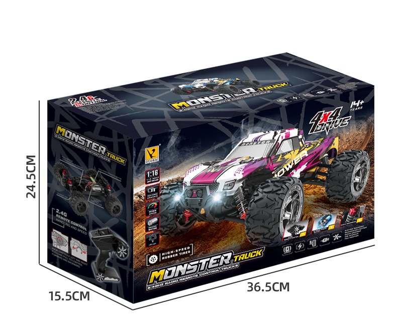 Esittelyssä Guokai MonsterTruck - tehokas 1:16 mittakaavan malli, jossa on neliveto ja edistyksellinen kauko-ohjaustekniikka. Tämä kauko-ohjattava MonsterTruck on rakennettu tarjoamaan intensiivistä ajohupia ja jännitystä, sillä sen vaikuttava nopeus on jopa 35 km/h ja se pystyy liikkumaan missä tahansa maastossa.