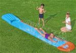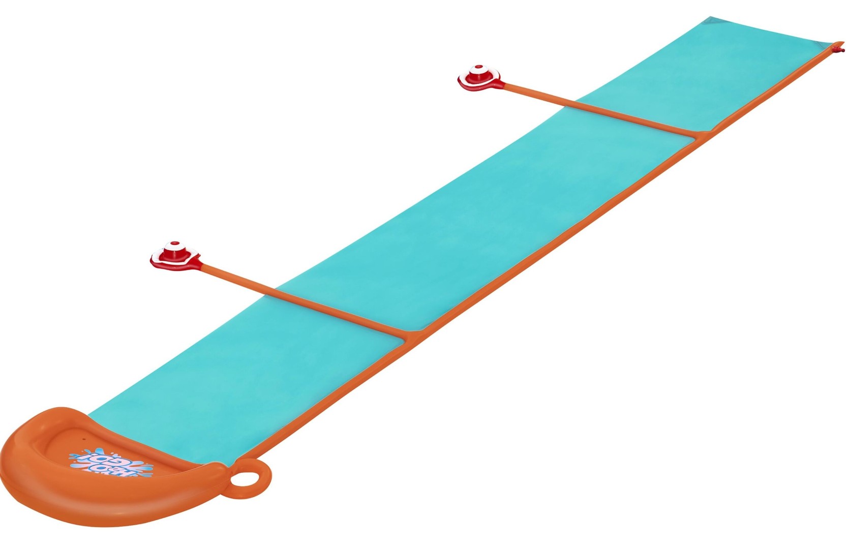 Kaikki vesi valuu radan päässä olevaan suureen roiskealtaaseen, jossa liuku päättyy näyttävään pläjäykseen. Sekä lapset että vanhemmat arvostavat helppoa käyttöönottoa – liukurata tarvitsee vain liittää puutarhaletkuun, ja se on käyttövalmis hetkessä.