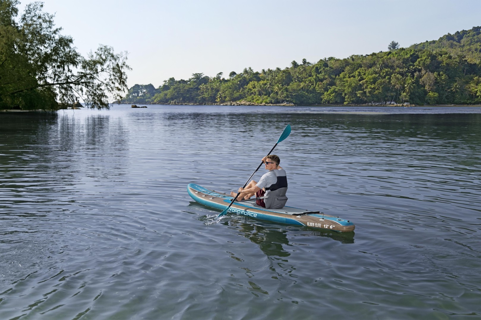 Hydro Force® Glider Elite™ 3.81 2-in-1 Inflatable Stand-Up Paddleboard & Kayak Kit on valmis toteuttamaan kaikki melontaseikkailusi! Tämä retkeilyyn suunniteltu SUP-lauta on kapeamuotoinen, joten se leikkaa veden tehokkaasti ja mahdollistaa pitkiä, sujuvia matkoja. Se on täydellinen valinta rauhallisiin, pidempiin ajoihin tyynellä vedellä – kiitos sen vakauden, nopeuden ja helposti mukana kulkevan rakenteen.