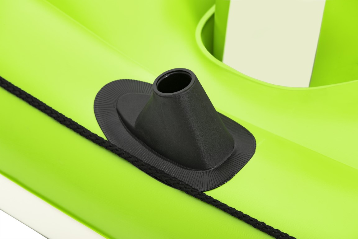 - Sisältö: 1 vene, 1 mela, 1 käsipumppu, 2 irrotettavaa evää, korjauslaastari.