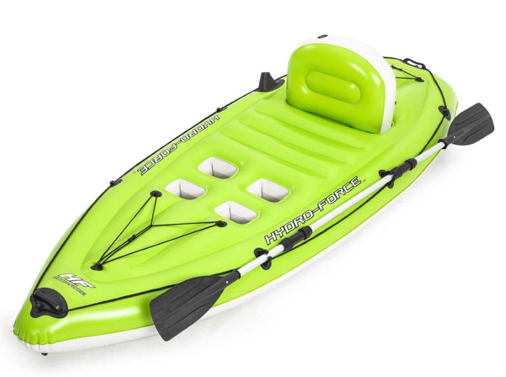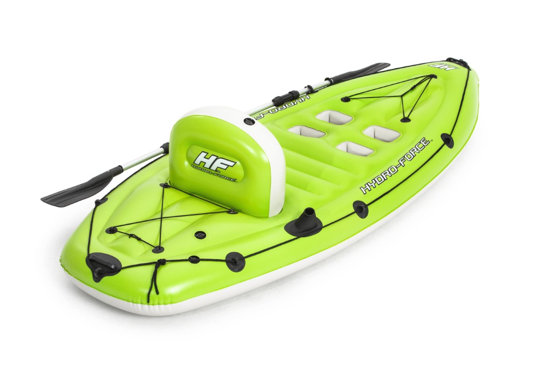Mikään ei ole parempaa kuin rentoutua veden äärellä ja kalastaa koko päivä. Nyt voit kalastaa mukavasti kätevän Hydro-Force™ Koracle -puhallettavan kalastuskajakin avulla. Sisäänrakennetun onkivapapidikkeen ja airoslukon lisäksi tässä kajakissa on myös puhallettava selkänoja, joka takaa täydellisen rentoutumisen. Mukana on myös 4 jalkatukea kaiken pituisille käyttäjille, joten kaikille tätä kajakkia käyttäville on luvassa ensiluokkaista mukavuutta. Koracle-kajakki on niin käytännöllinen kuin vain voi olla. Puhalla se vain täyteen, kun olet valmis käyttämään sitä, ja tyhjennä se, kun olet valmis. Se sopii täydellisesti kuljetukseen ja pieneen säilytykseen. Lisäksi selkäevä on irrotettavissa, mikä helpottaa kajakin varastointia entisestään. Pakkaus sisältää myös Air Hammer™-käsipumpun nopeaa ja helppoa täyttöä varten, melan ja korjauslaastarin.