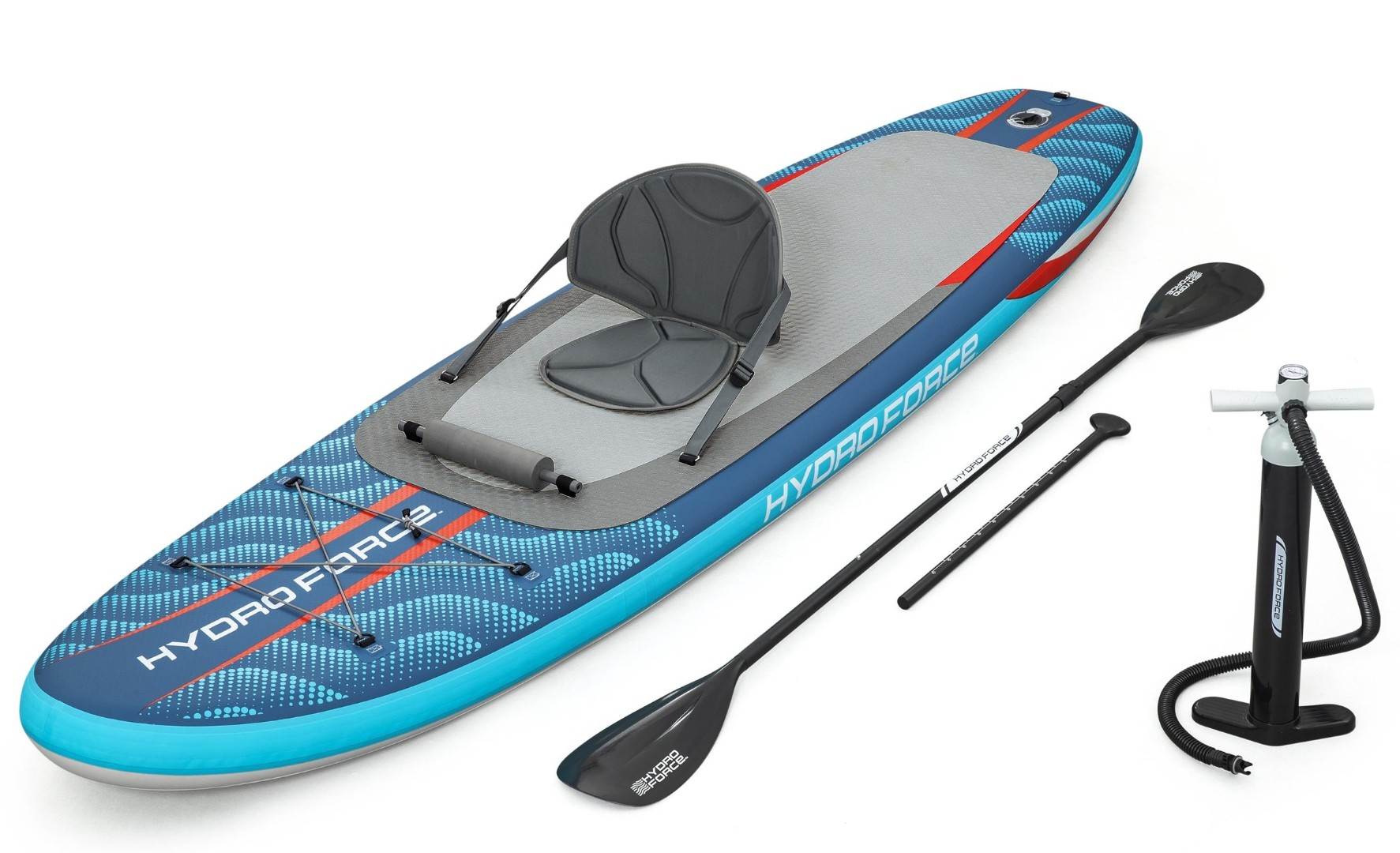 Tee seuraavasta vesiseikkailustasi entistäkin mahtavampi Hydro Force® Oceana™ 3.05m 2-in-1 -puhallettava Stand-Up Paddleboard & Kayak Kit -paketin avulla. Tässä vapaa-ajan monitoimimelojassa on leveä muoto tasapainon saavuttamiseksi erilaisissa vesiolosuhteissa, ja sen muunneltavien ominaisuuksien ansiosta voit meloa haluamallasi tavalla.