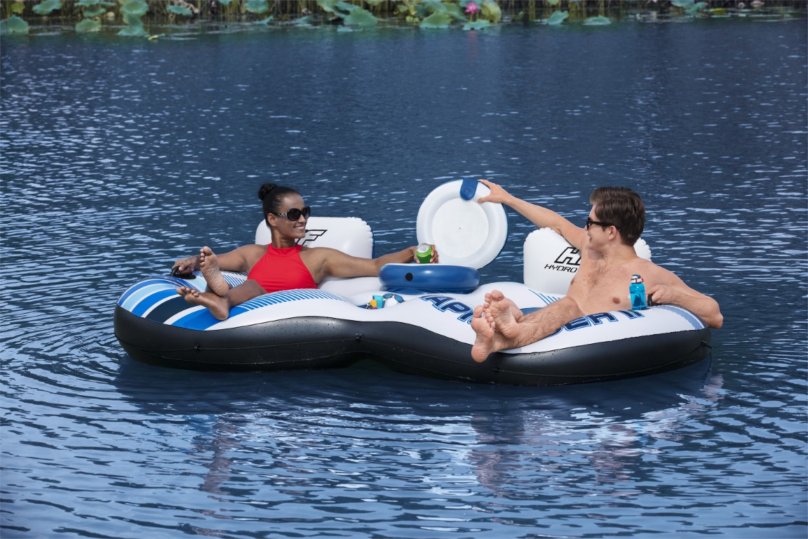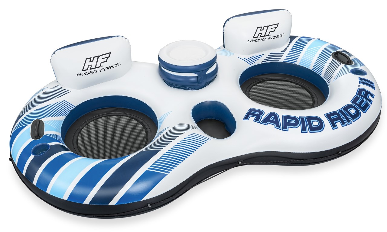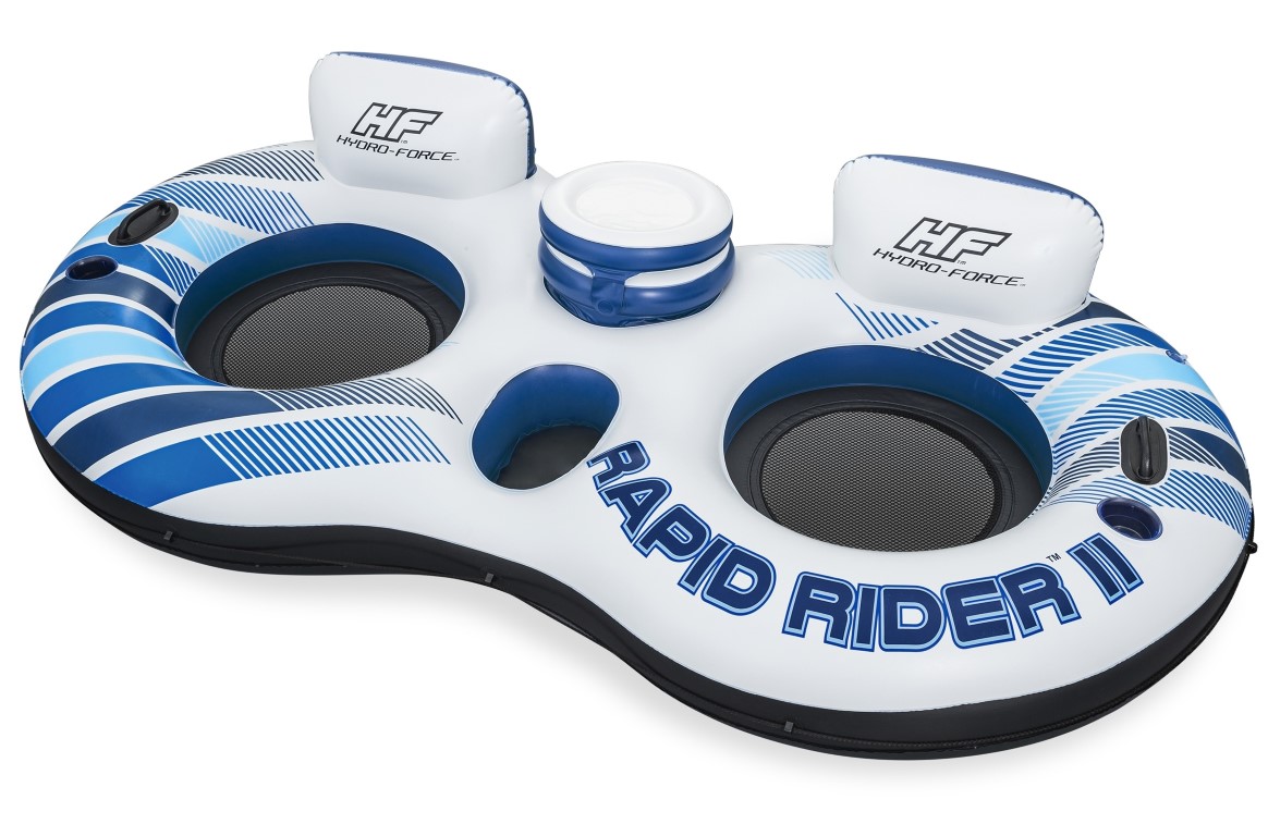 Hydro-Force™ Rapid Rider™ II on täydellinen tapa nauttia hauskanpidosta auringossa ja vedessä parhaan ystäväsi tai uintikumppanisi kanssa! Tähän kestävään järvi- ja jokiputkeen mahtuu 2 aikuista, ja siinä on ylivoimainen Inflata-Shield™-materiaalimme, joka kestää puhkeamista. Rapid Rider II sisältää myös 2 sisäänrakennettua mukitelinettä, joten suosikkijuomasi ovat aina lähellä. Lisäbonuksena tässä kahden hengen jokiputkessa on sisäänrakennettu kylmälaukku välipaloille ja juomille sekä säilytyslokero muille välttämättömille tavaroille. Lisäksi tukevat kahvat tekevät putkeen nousemisesta ja siitä poistumisesta helppoa. Rentoudu ja rentoudu vedessä erityisesti suunniteltujen viileiden verkkoistuinten ja ensiluokkaisten selkänojien tarjoaman mukavuuden ansiosta. Tartuntaköysi kiertää koko putken ympäri, mikä tarjoaa lisäturvallisuutta ja helppoutta telakoitumisessa sekä mahdollisuuden kiinnittyä muihin uimarenkaisiin. Ota siis aurinkovoidetta, liity ystäviesi seuraan ja nauti rentouttavasta kellumisesta Hydro-Force Rapid Rider II -uimarenkaalla!