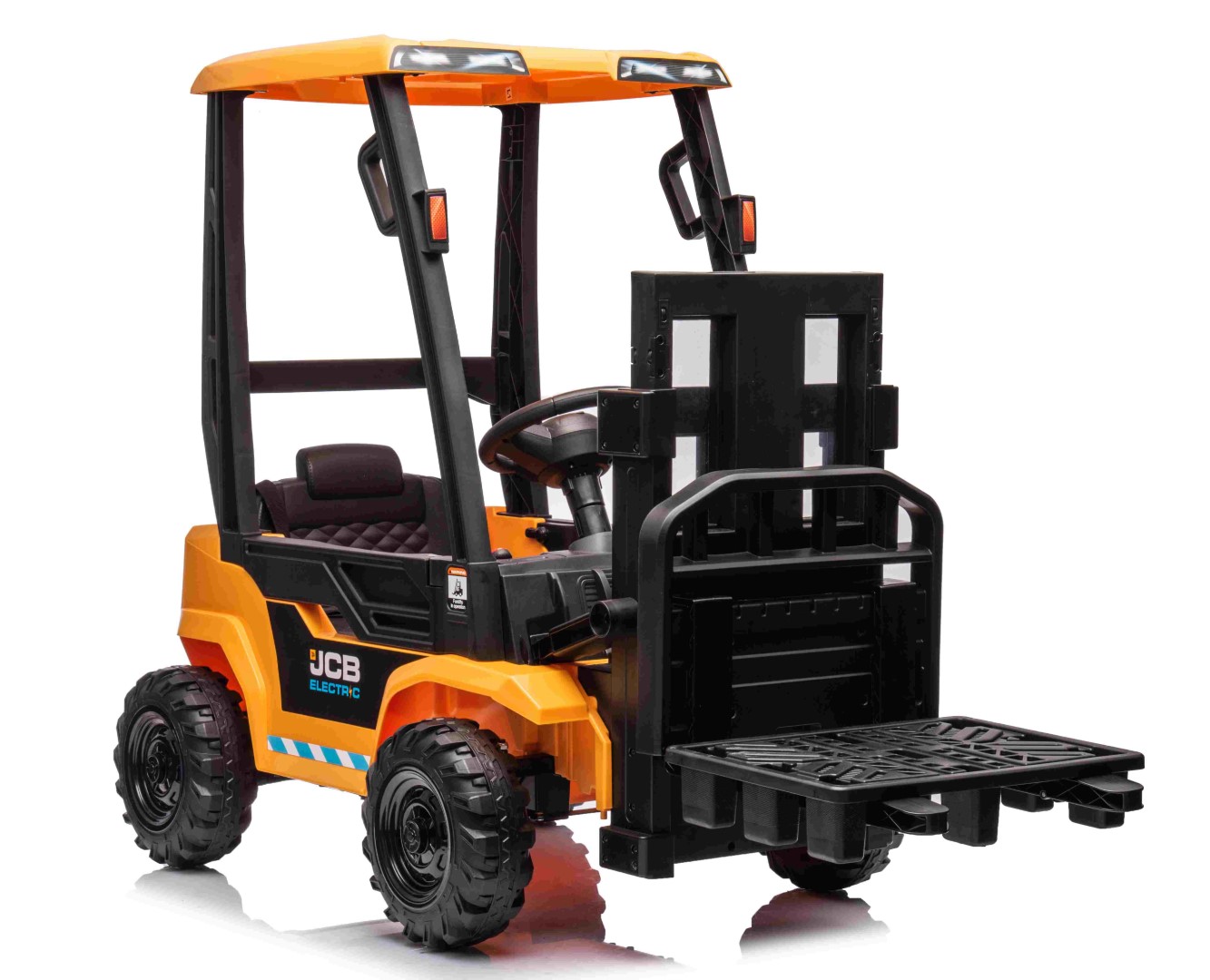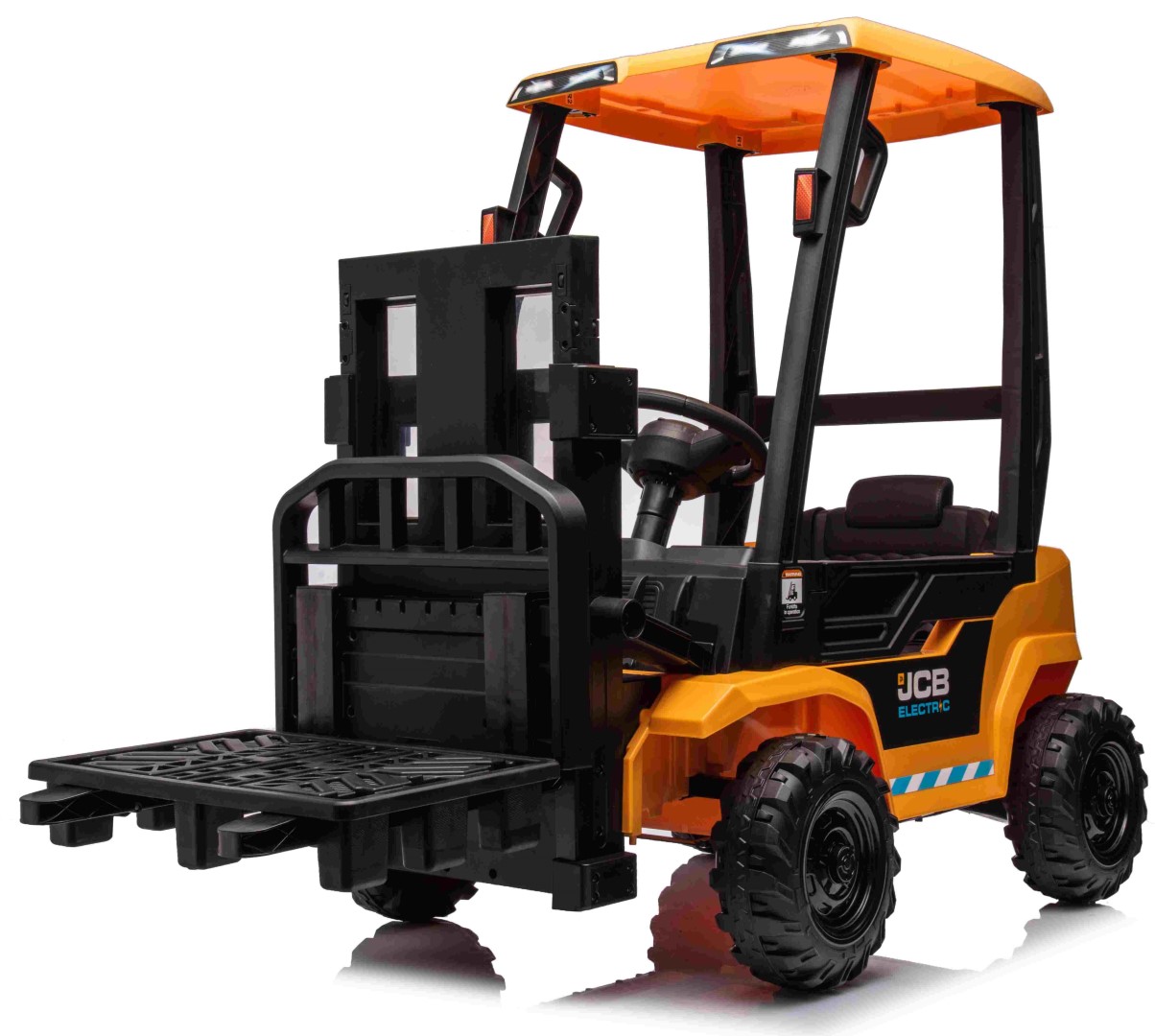 JCB:n luotettavan tuotemerkin ansiosta tässä sähköisessä trukissa on joukko jännittäviä ominaisuuksia. Intuitiivisen vaihdevivun avulla lapset voivat helposti nostaa ja laskea haarukoita, jolloin he tuntevat ohjaavansa oikeaa trukkia.