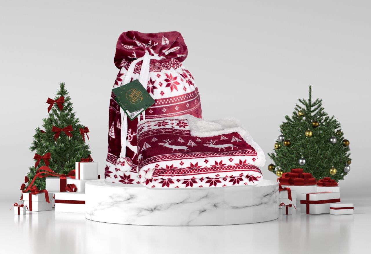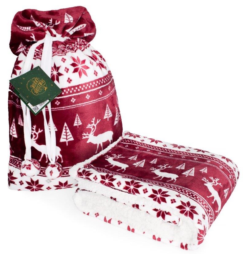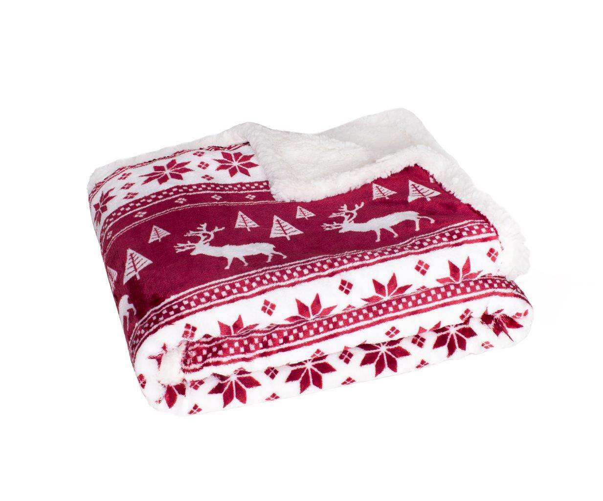Joulu Coral Fleecepeitto - 150 x 200 cm, Tummanpunainen