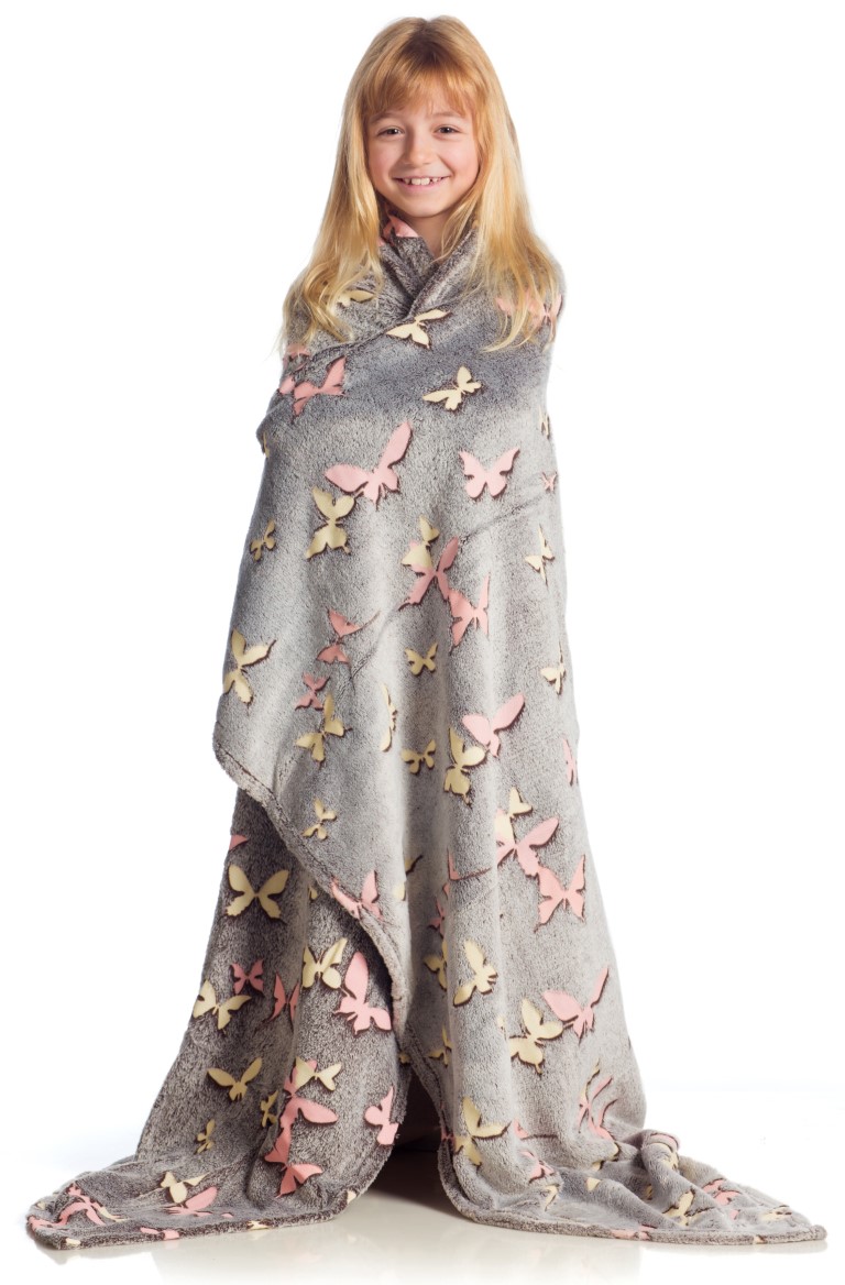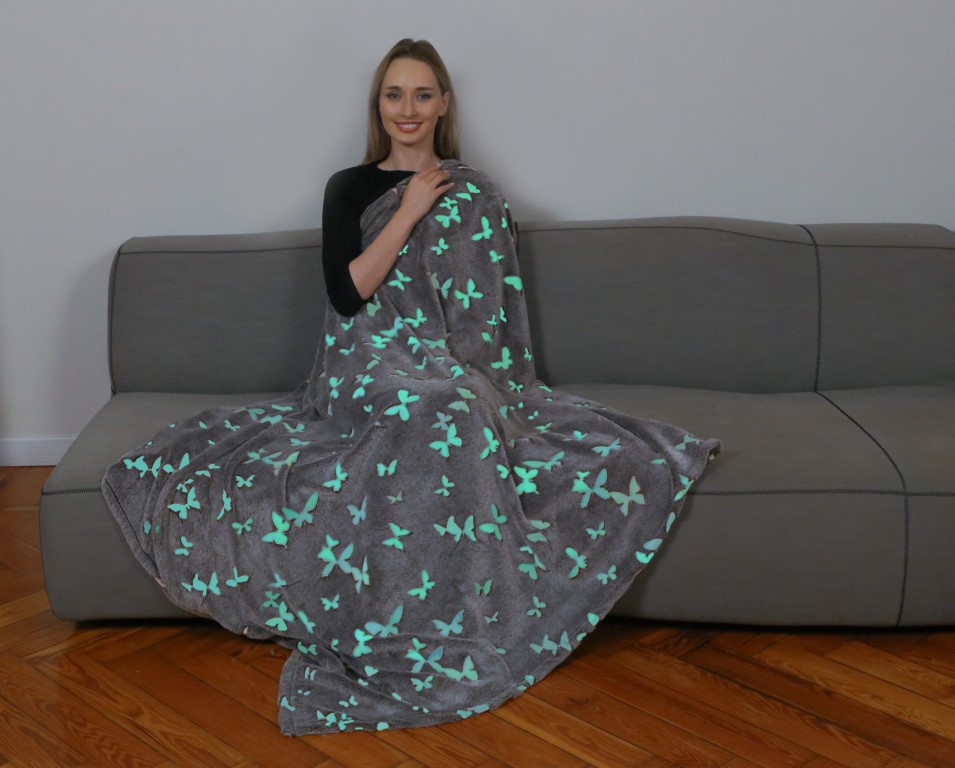 KANGURU Pimeässä hehkuva perhospeitto/viltti 130 x 150 cm