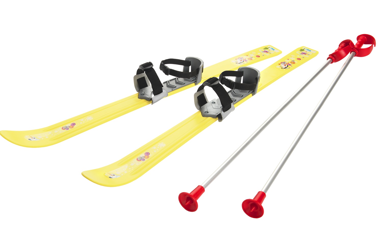 Lasten sukset 90 cm ja suksisauvat, keltainen