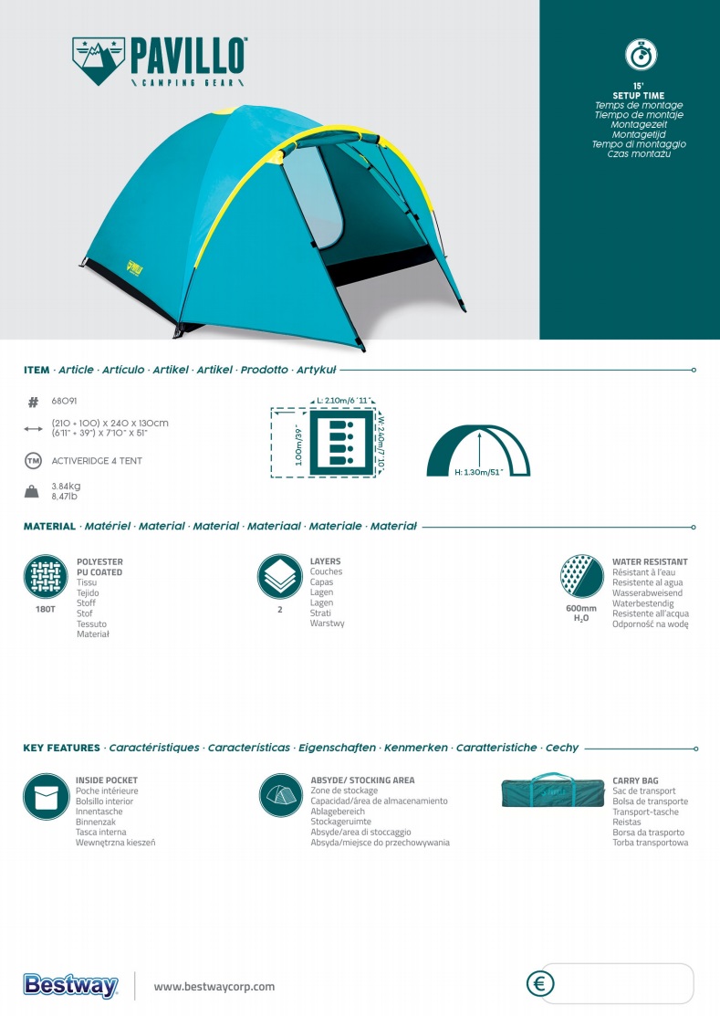 | Tyyppi: | Pavillo Activeridge 4 teltta 240 x 130 cm |