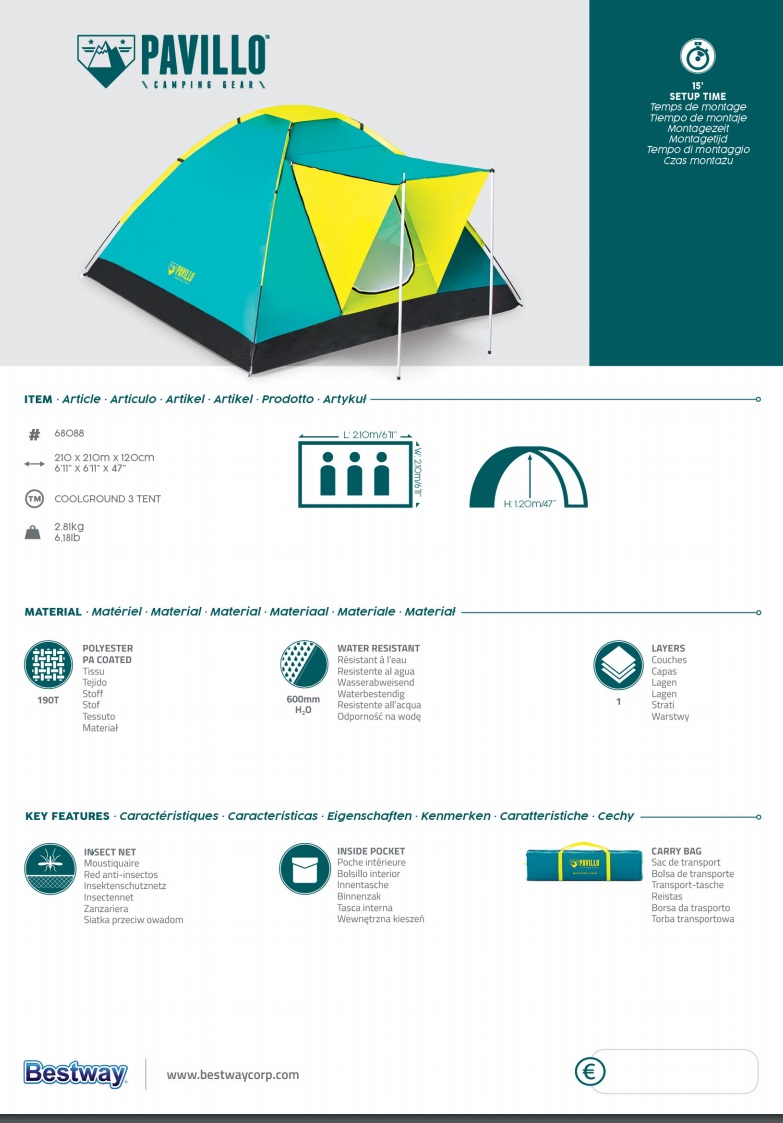 | Tyyppi: | Pavillo Coolground 3 Teltta 210 x 210 x 120 cm |
