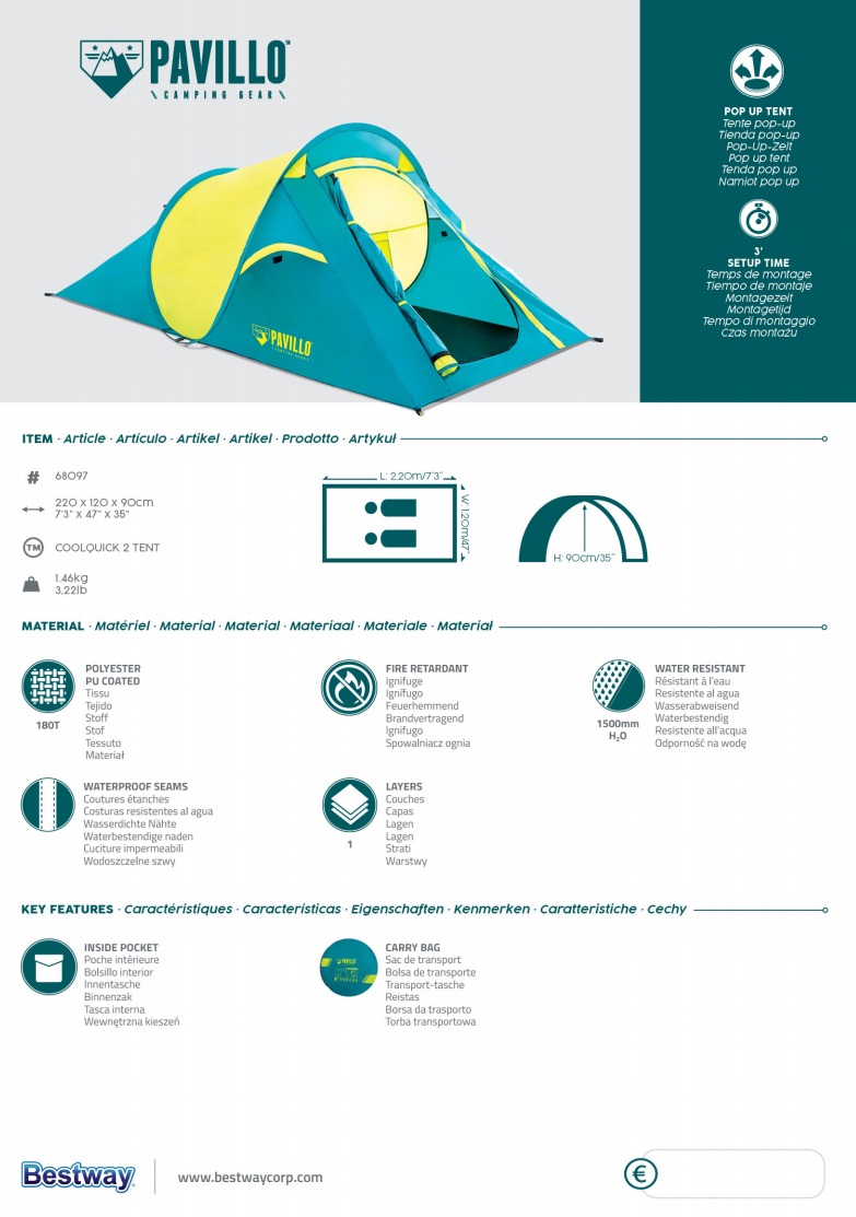 | Tyyppi: | Coolquick 2 Pop Up -teltta 220 x 120 x 90 cm |