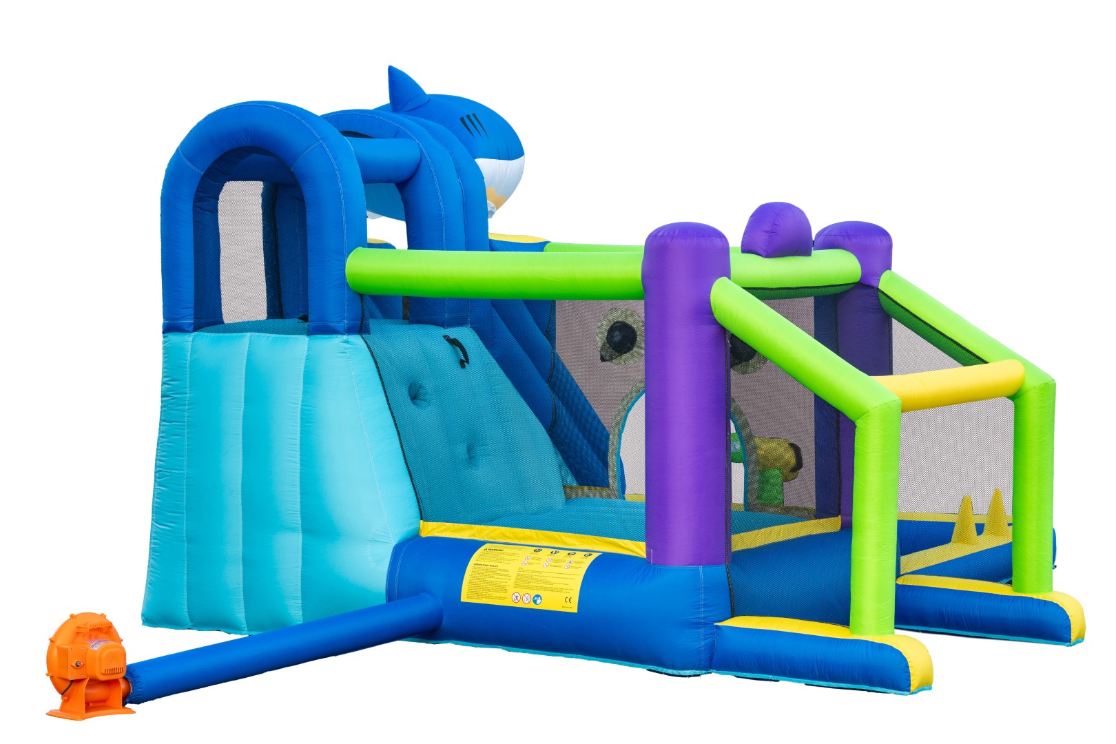 - Pakkaukseen sisältyy: pomppulinna, tuuletin 220-240V ja tanskalainen, ruotsalainen, norjalainen ja suomalainen käyttöohje.