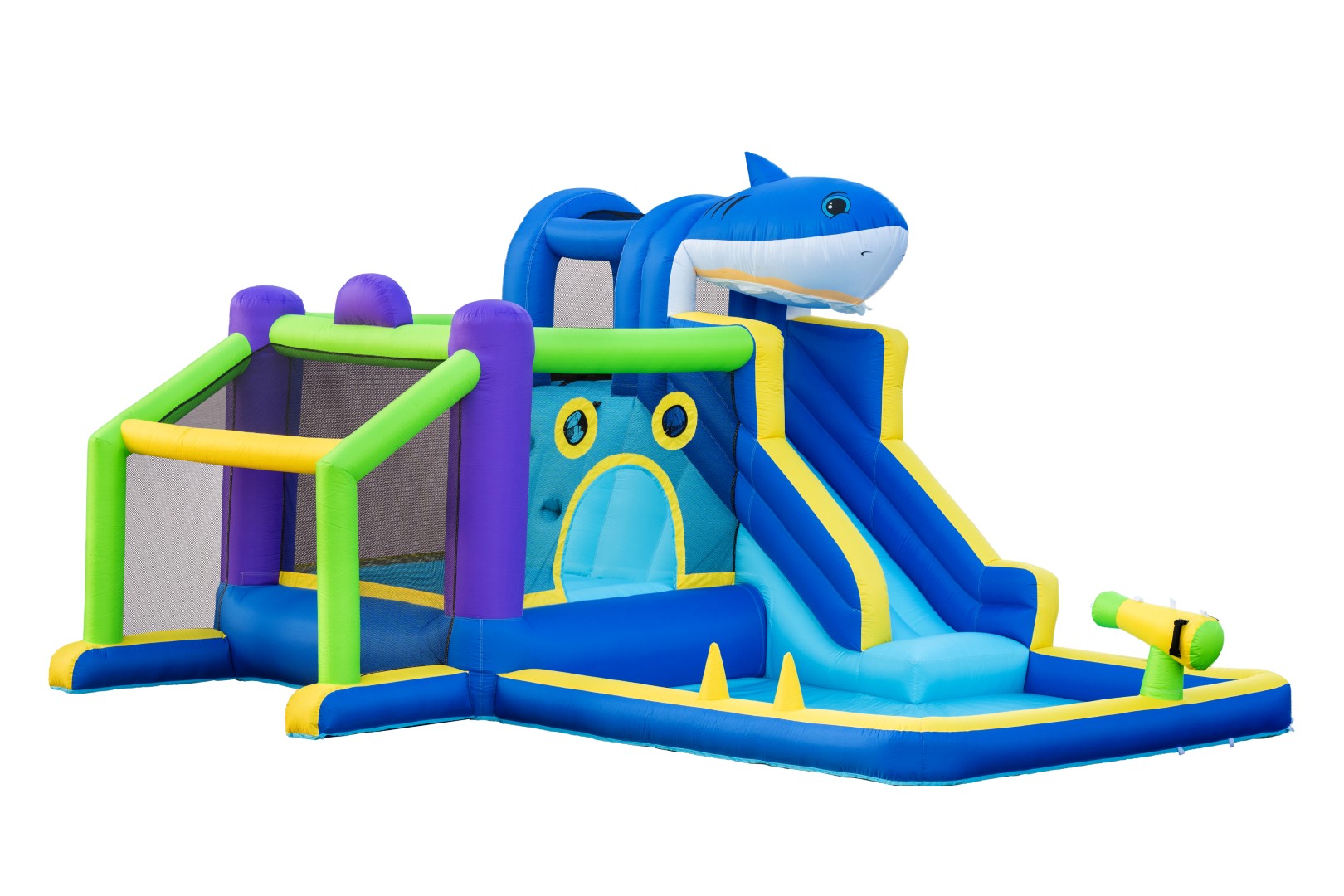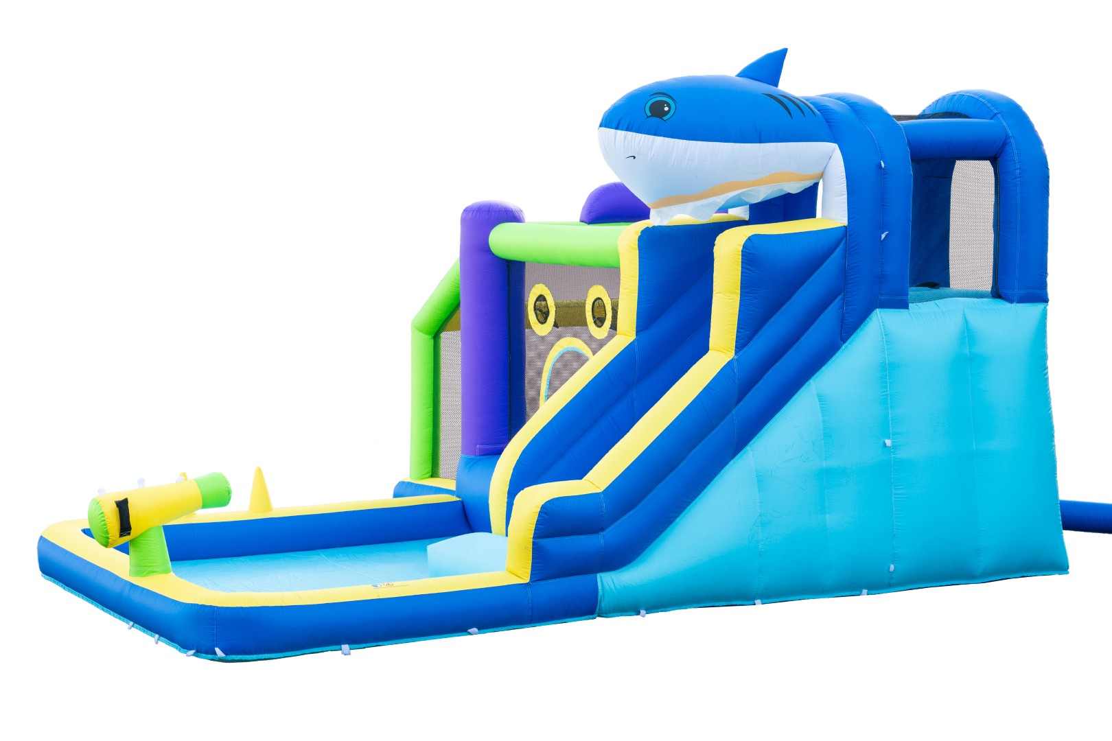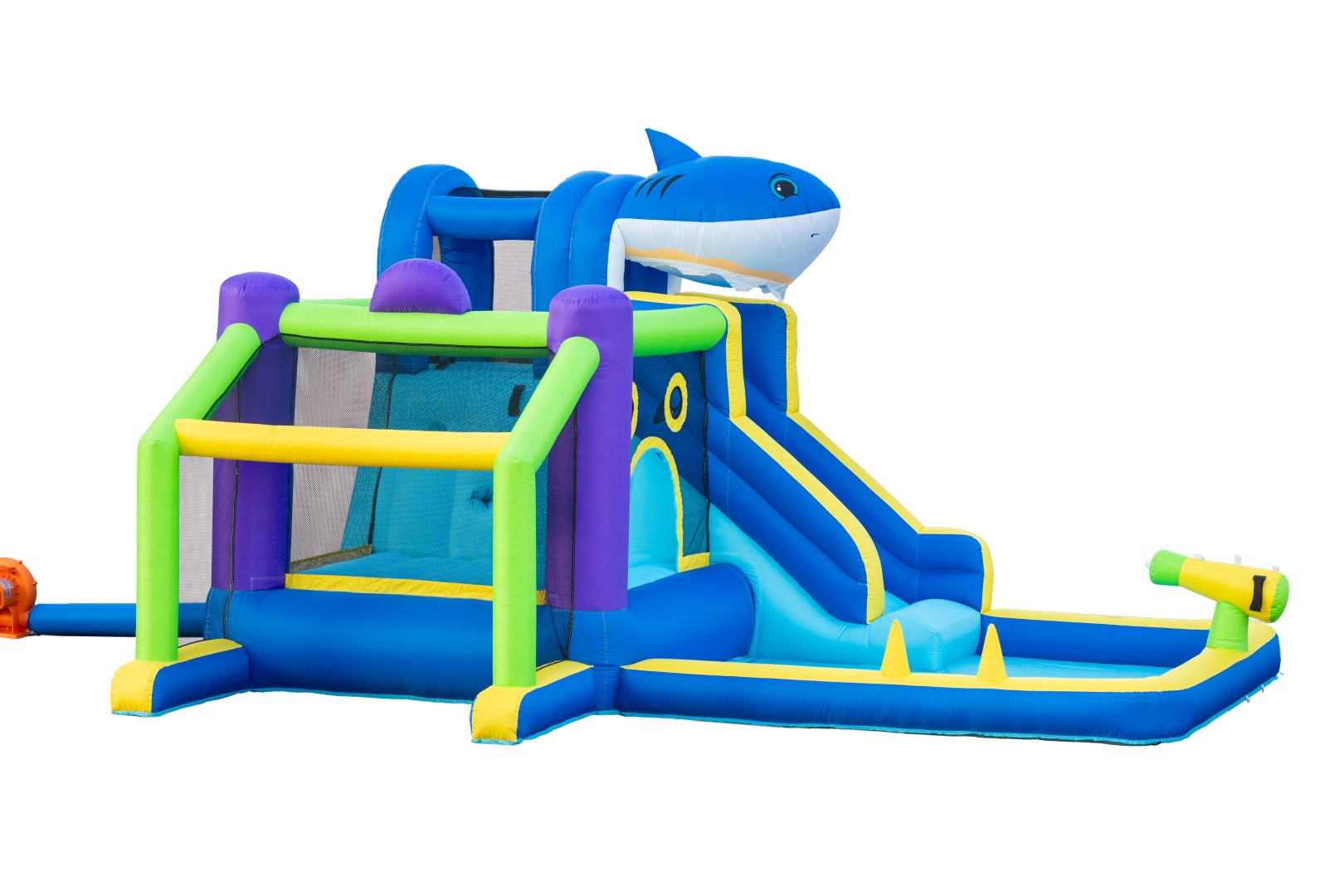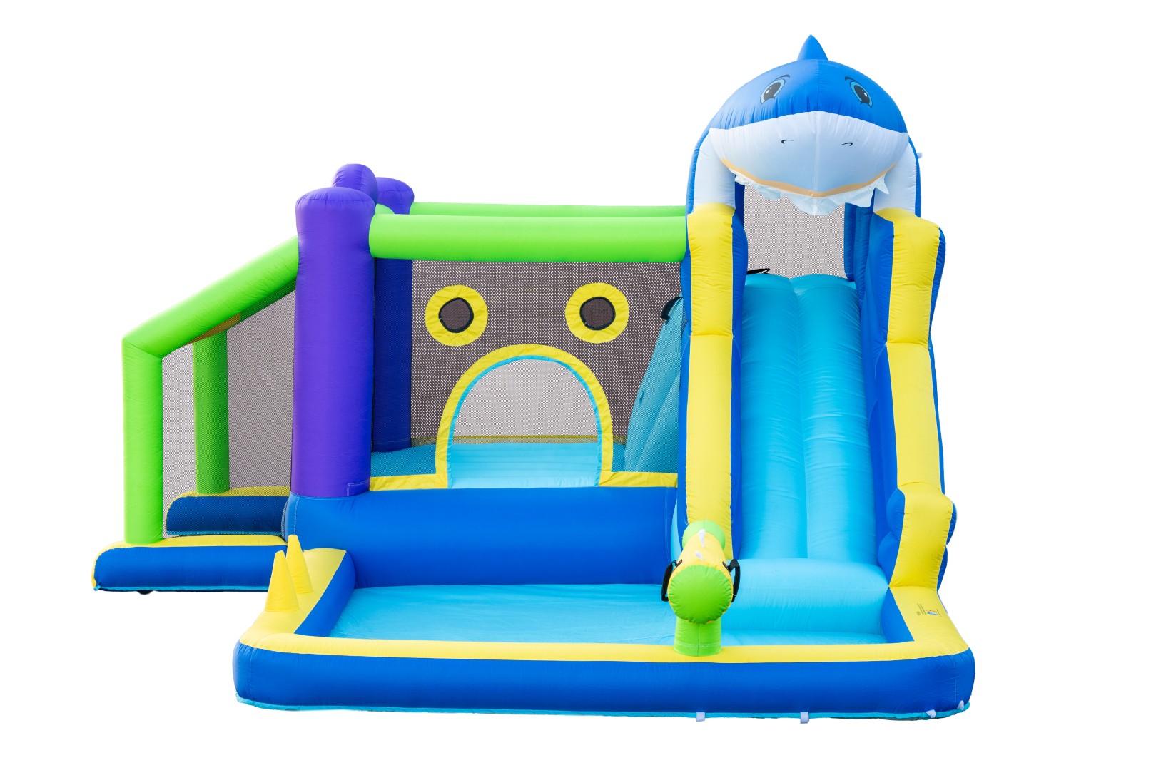 Luo kesän hauskin takapihan leikkipaikka tällä värikkäällä puhallettavalla pomppulinnalla! Lapset saavat tuntikausia aktiivista leikkiä liukumäen, pomppimisalueen, pallopelien ja vesitykin avulla - täydellinen kuumille kesäpäiville.