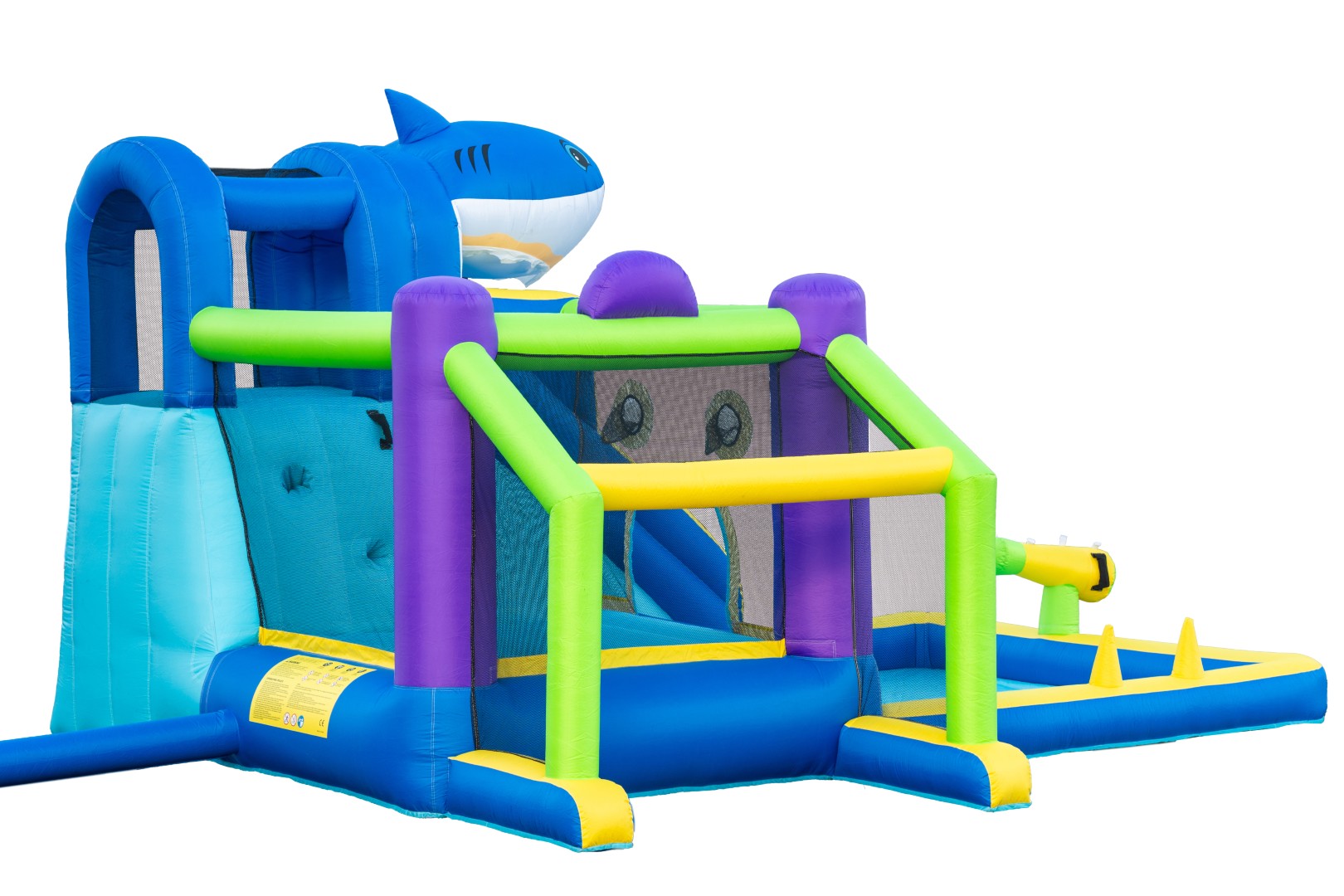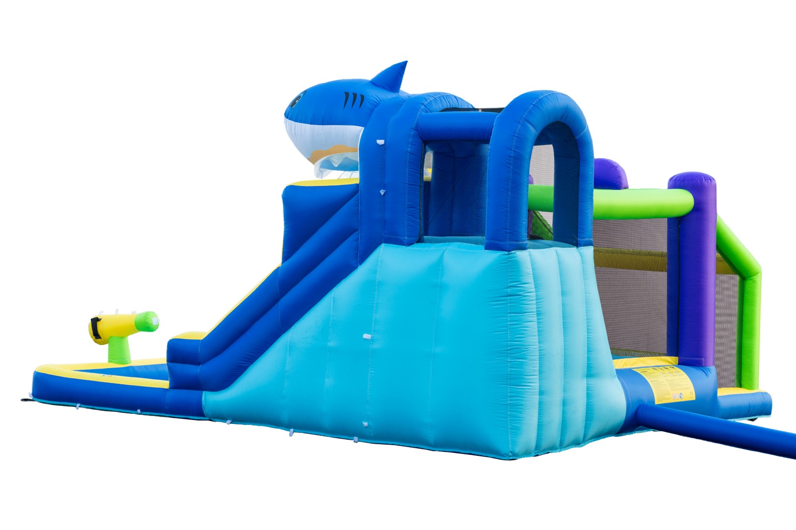 - Pystyttäminen on nopeaa ja helppoa. Tehokas puhalluspumppu puhaltaa vesipuiston täyteen alle 2 minuutissa.